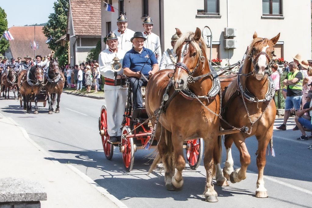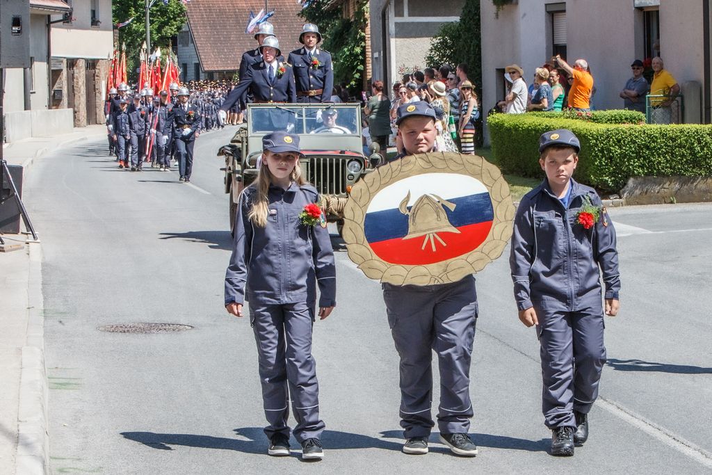 Pogled, ko so se po glavni cesti pripeljali gasilci, pa je bil resnično veličasten. Povorko je začela skupina konjenikov z zastavami, sledili so jim v narodne noše oblečeni vaščani, med katerimi ni manjkalo niti najmlajših. Za njimi so z elegantnimi plesnimi koraki stopale mlade mažoretke Prosvetnega društva Horjul, ki jim je v ritmu glasbe strumno sledil Pihalni orkester Vrhnika. Osrednji del parade so v velikih številkah sestavljali gasilci in gasilke, ki so ponosno nosili tudi društvene prapore. Za njimi so sledili gasilci s konjskimi vpregami in starimi ročnimi brizgalnami, nato pa so se en za drugim peljala še sodobnejša motorna vozila, tako da je bilo moč opaziti napredek in vse posodobitve društva vse do današnjih dni. Razvrstitvi gasilcev in vaščanov pred gasilskim domom so sledili nagovori slavnostnih gostov, med drugim župana občine Horjul, Janka Prebila ter predsednika Gasilske zveze Slovenije Janka Cerkvenika, ki sta izrazila hvaležnost vsem gasilcem za njihov oz. naš nesebični prispevek k varnosti in zaščiti celotne skupnosti. Za glasbeno in hudomušno popestritev je poskrbel sekstet Odoica. Kljub žgočemu poletnemu soncu so v gasilskih vrstah vztrajno stali tudi naši najmlajši in tako pokazali to trdoživost, ki je značilna za prave gasilce.
