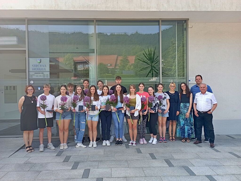 Občina Horjul vsako leto proti koncu šolskega leta povabi v svoje prostore najuspešnejše učence Osnovne šole Horjul, ki so vseh devet let zaključili z odličnimi ocenami. Letos se je te častne tradicije udeležilo kar 14 devetošolcev, kar je največ doslej. Sprejela sta jih župan Janko Prebil in direktorica občinske uprave Urška Marolt Bovha, v spremstvu razredničark Cirile Šramel in Barbare Jagodic ter ravnatelja Aleksandra Gubeta.