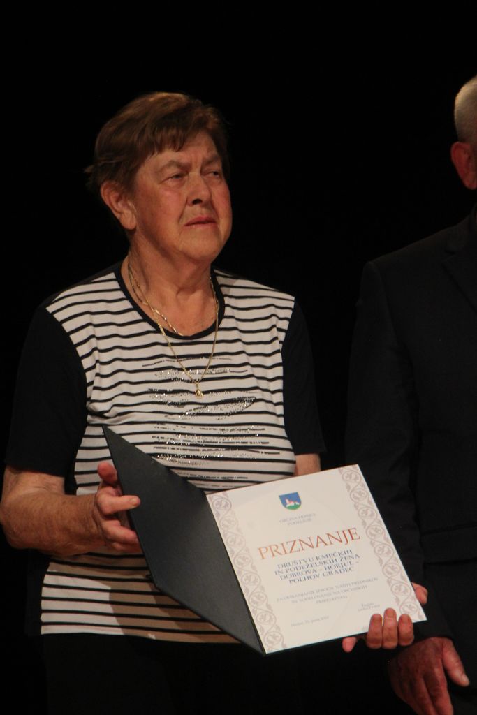 Za dolgoletno prostovoljno in predano delo v vaškem odboru Vrzdenec, Društvu upokojencev Vrzdenec, Prostovoljnem gasilskem društvu Vrzdenec in delovanjem v podružnični cerkvi sv. Kancijana se ji v odboru iskreno zahvaljujejo ter ji podeljujejo priznanje Občine Horjul.