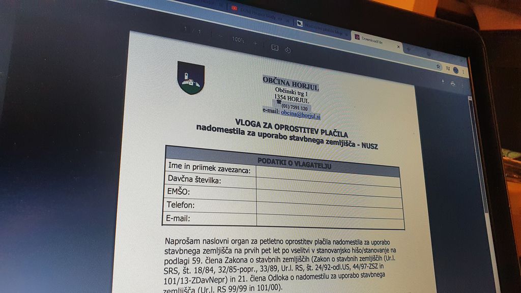 Obrazec za uveljavljanje oprostitve najdete na spletni strani Občine Horjul (E-OBČINA – Vloge in obrazci – Vloga za petletno oprostitev plačila nadomestila za uporabo stavbnega zemljišča). Vlogo lahko oddate osebno v sprejemni pisarni, preko klasične pošte ali elektronsko. Upravna taksa za vlogo znaša 22,60 €, razen če je oddana elektronsko, saj v tem primeru znaša 18,10 €. Novost je tudi to, da je v letošnjem letu Občina Horjul pričela s posodobitvijo podatkov o velikosti zemljišč in objektov. Geodetska uprava RS namreč vodi evidenco, v kateri so navedene velikosti, ki so merodajne za obračun NUSZ. Iz tega naslova se lahko zgodi, da se bodo letošnji zneski razlikovali od preteklih, kljub temu da se vrednost točke za izračun nadomestila ni nič spremenila.