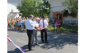 Današnji prvi septembrski dan je bil letos za stanovalce Šolske ulice, učence in učitelje osnovne šole ter vse občane malo bolj poseben, saj je bila odprta prenovljena Šolska ulica. Župan Janko Prebil je skupaj z Bojanom Hočevarjem, direktorjem podjetja CVP d.o.o. iz Ljubljane ter ravnateljem Primožem Garafolom prerezal trak in tako simbolično odprl prenovljeno Šolsko ulico. Ob tej priložnosti se je župan zahvalil vsem stanovalcem ulice za razumevanje in potrpežljivost v času gradnje kot tudi izvajalcu ter vsem sodelujočim v projektu za korektne odnose. Vsem uporabnikom prenovljene ceste, še posebej učencem je zaželel srečno in varno na tej poti. Prenovljena Šolska ulica s povezovalno cesto do vrtca in urejenim igriščem je bilo tako lepo darilo za nov začetek šolskega leta za učence osnovne šole in tiste najmlajše v vrtcu.