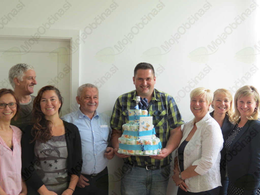 Bogdan Marolt, ki na občini Horjul skrbi za komunalne zadeve, se je v torek, 14. junija, razveselil rojstva svojega prvorojenca. Ob tem veselem dogodku so mu zaposleni skupaj z župan Jankom Prebilom iskreno čestitali in ga presenetili s prav posebno torto.