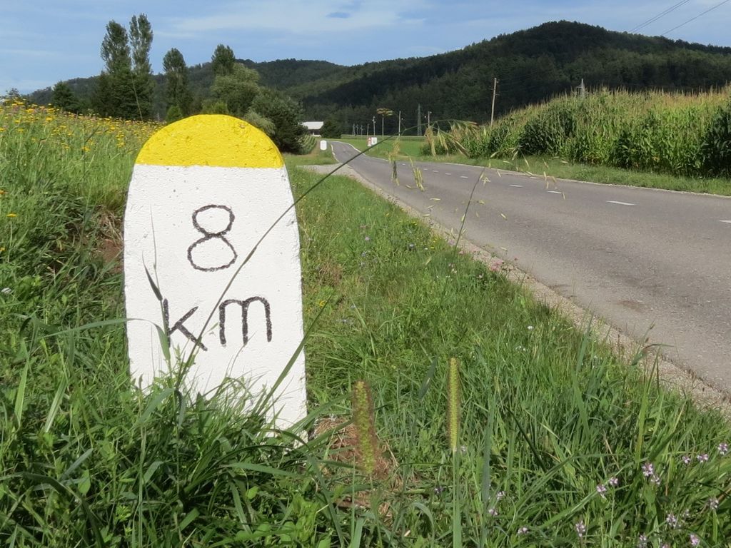 Slavko je kamen prebarval po originalni predlogi, in sicer z belo in rumeno barvo. Kamen, ki stoji na začetku horjulske občine, malo za vasjo Brezje, vsem mimoidočim sporoča, da je od Dobrove do točke, kjer je postavljen, razdalja 8 kilometrov. Nekoč je bilo teh kamnov več, a so se izgubili skozi čas. Vsako delo ob cesti, širitev, asfaltiranje, urejanje infrastrukture ob cesti predstavlja nevarnost, da se na ta nekoč pomemben mejnik ob cesti pozabi. Če smo bolj natančni, je bilo še ne tako dolgo nazaj od Horjula do Dobrove dvanajst kamnov. Njihovo štetje pa je potekalo takole: šteti moramo tudi začetni, oziroma ničelni kilometerski kamen na Dobrovi, saj je bil zadnji kamen v Horjulu z oznako 11 km. Žal se je do danes ob tej cesti ohranilo le še pet obcestnih kilometrskih kamnov. S to obnovo je Slavko Miklavčič želel predvsem ohraniti nekaj tistega, kar je včasih ljudem, ki so peš ali z vozovi potovali po tej cesti, ko še ni bilo navigacij ali zemljevidov v raznih aplikacijah, pomagalo, da so vedeli, koliko poti jih še loči do cilja. Hkrati pa tudi opozoriti na to, da ob naslednjih delih na ali ob cesti, tega in podobnih kamnov ne bi zavrgli.