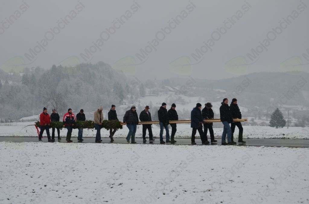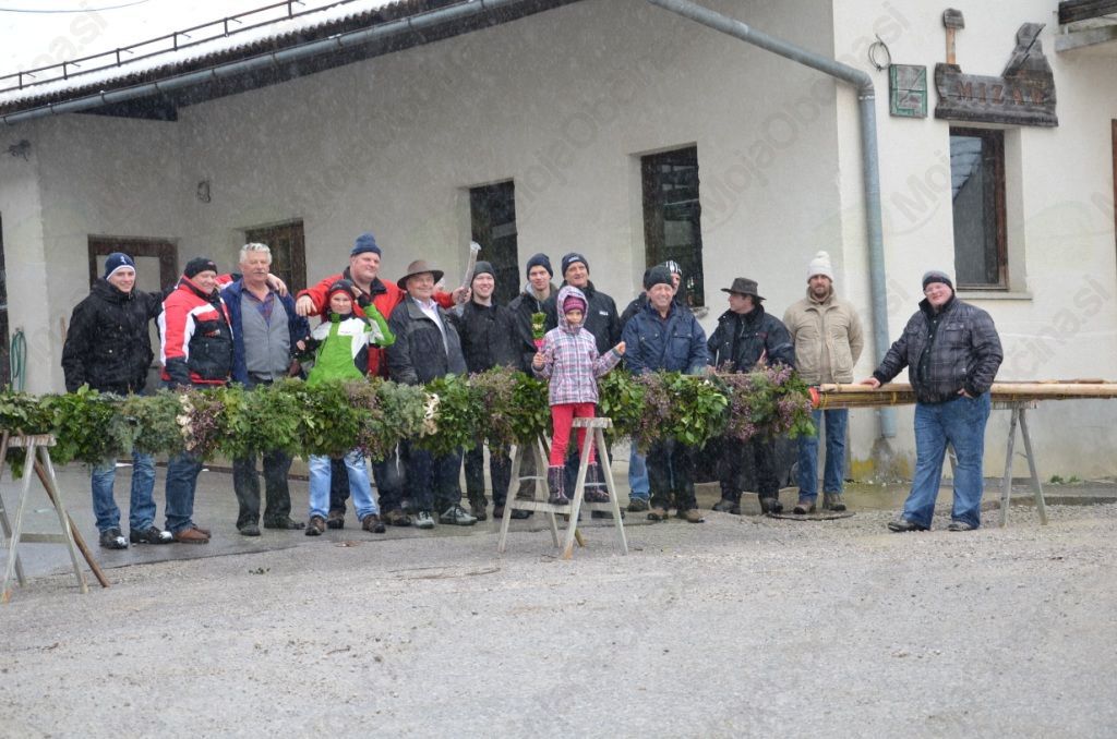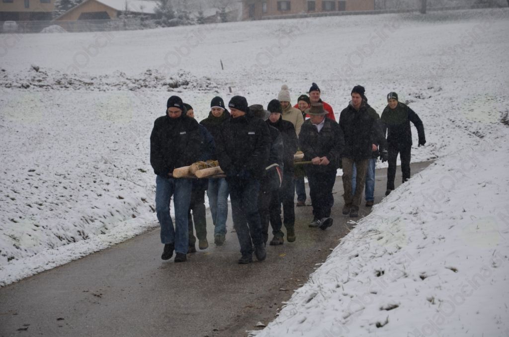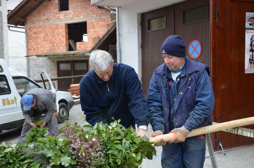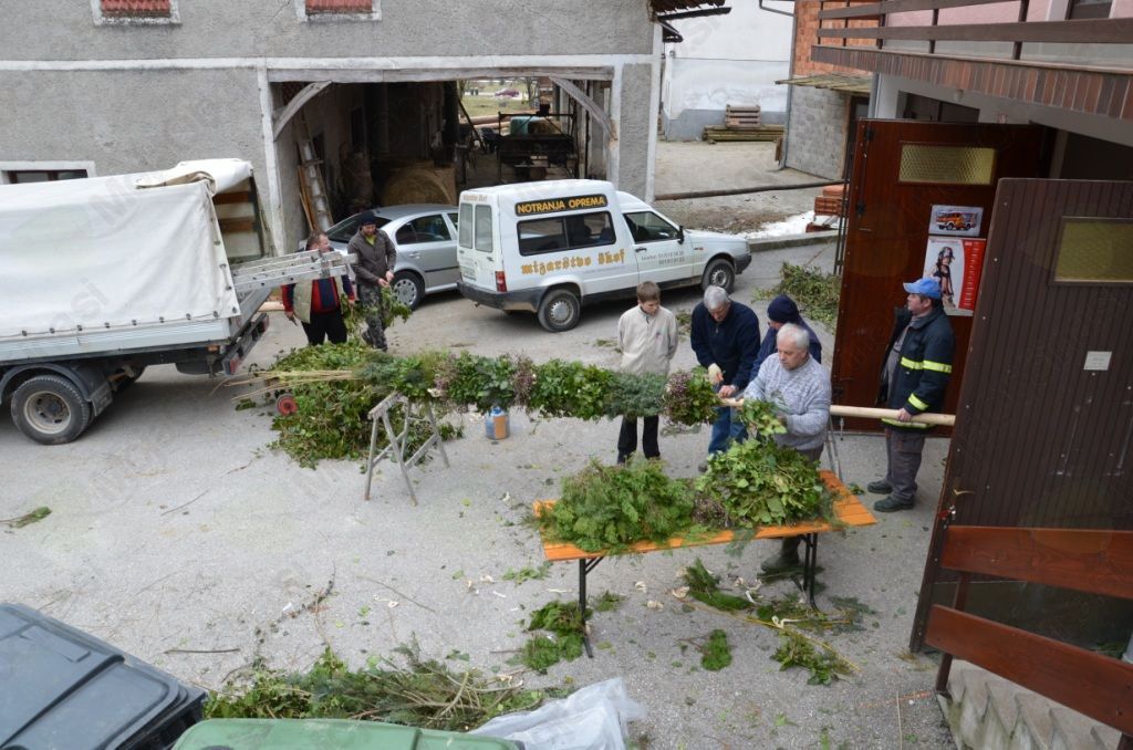 Nedeljsko jutro nas je presenetilo s snežinkami in mrazom, a ni omajalo naše namere, da velikanko odnesemo k blagoslovu. Velikost in teža butare sta zahtevali kar sedem parov močnih rok. Prijetno vzdušje in dobra volja sta nas gnala proti Horjulu, kamor smo prispeli še pravočasno in butaro postavili ob kapeli. Z upanjem smo zrli naokrog, da bi ugledali še kakšno ogromno butaro, ki bi se pridružila naši, a se to žal ni zgodilo. Ob vrnitvi so nas znanci iz Horjula, Zaklanca in Podolnice prijazno pogostili ter nam tako olajšali pot in omogočili, da smo si za trenutek spočili utrujene roke. Najnapornejši del poti je bil vzpon k cerkvi sv. Urha, kjer smo butaro postavili še zadnjič pred vrnitvijo v vas. Sklepno dejanje se je zgodilo v središču vasi pri križu, kjer butara stoji še danes. Ker je bila narejena skrbno in premišljeno, vztrajno kljubuje vsem vremenskim razmeram, zato si jo tisti radovednejši še vedno lahko ogledate v vsej njeni mogočnosti.