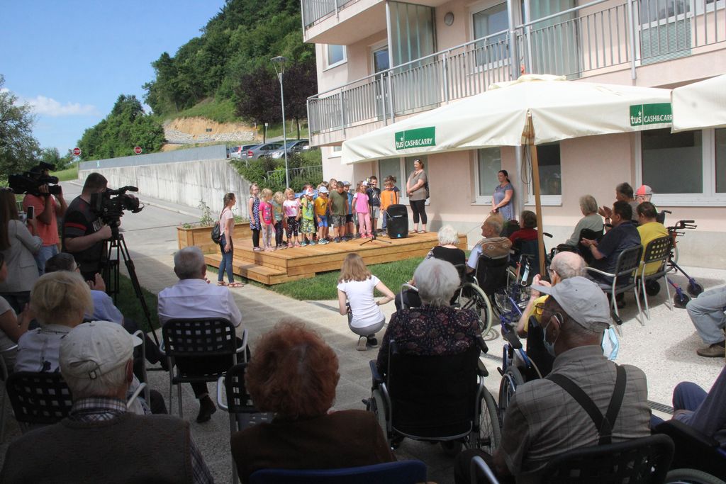 Novo pridobitev so proslavili s prireditvijo, kjer so kot prvi na oder stopili otroci iz horjulskega vrtca, pa so 2. 7. otvorili prenovljene površine, ki sedaj omogočajo več gibanja, zasadili so visoke grede s primernimi rastlinami, ki spodbujajo k stiku z zemljo, uredili refleksno terapevtsko pot in kotiček za umirjanje ter sproščanje. Direktorica Anamarija Kejžar pojasnjuje: 'Stik z naravo pozitivno vpliva na večino ljudi, s spodbujanem gibanja pa želimo doseči izboljšanje razpoloženja, ter pri stanovalcih z demenco zmanjšanje tesnobe, razdraženosti in depresije. S tem stanovalcem omogočajo prijazno in varno okolje. Stanovalci so se najbolj razveselili visokih gred, ki omogočajo aktivnost vrtnarjenja. Veselje je slišati in videti zadovoljne stanovalce, ko ti rečejo kako so srečni, ko končno spet lahko vrtnarijo.'