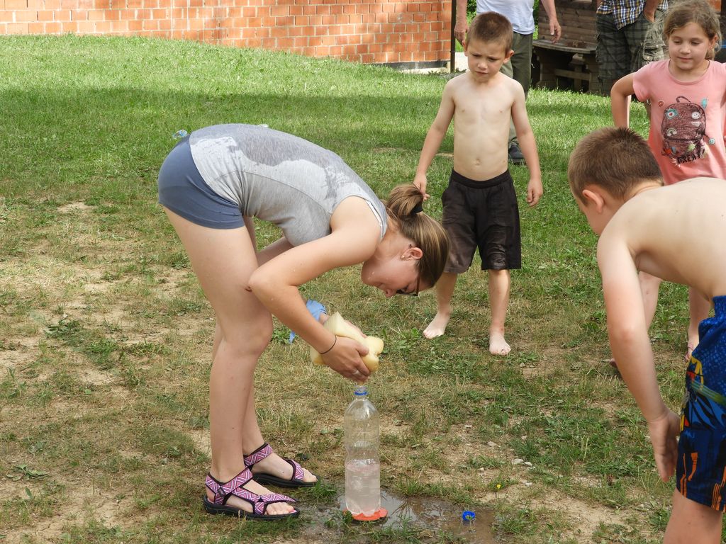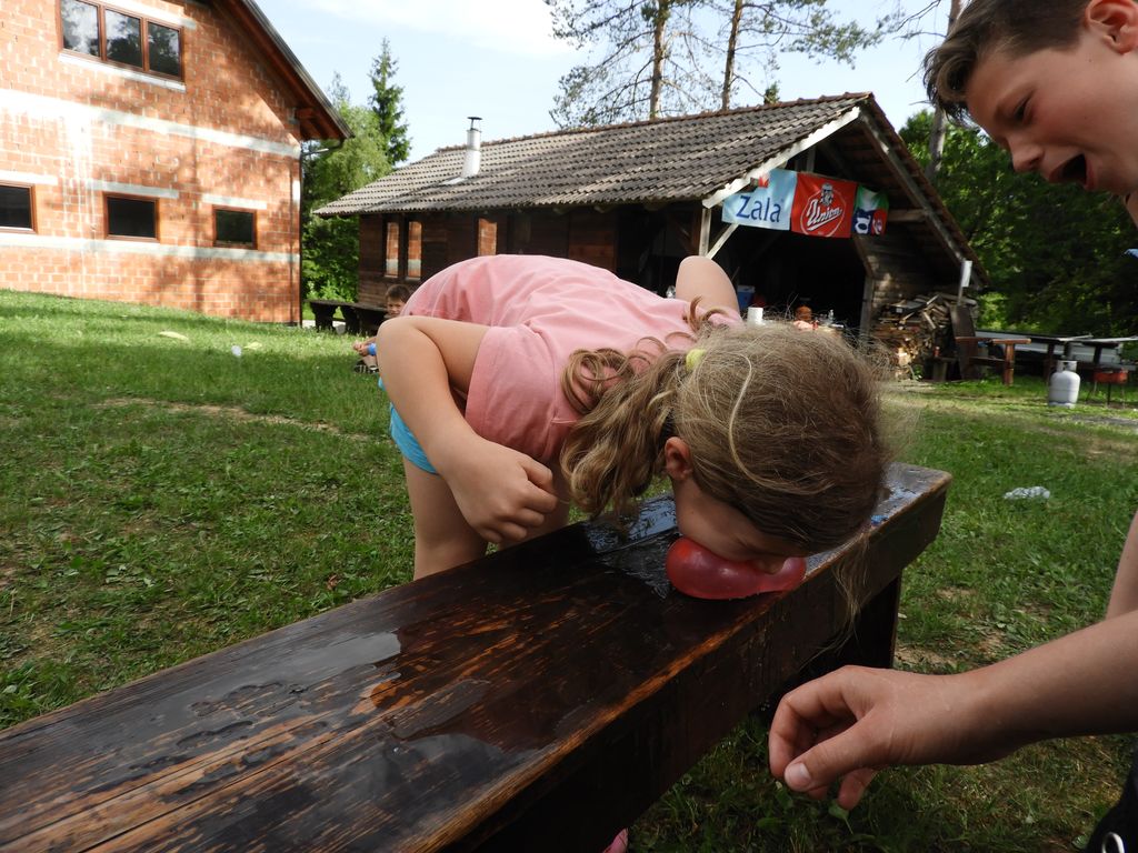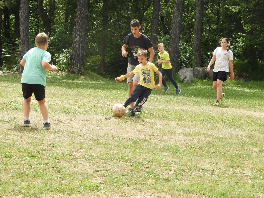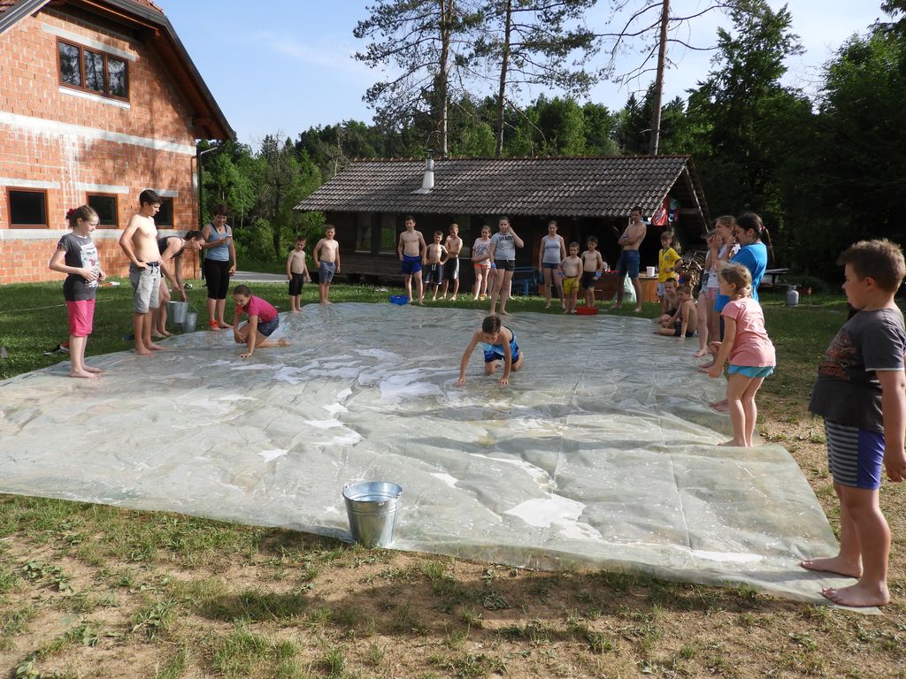 Petek smo izkoristili za igranje nogometa, odbojke in drugih iger. Po večerji je sledilo druženje ob ognju, ki so ga postavili otroci. Sobota je bila rezervirana za pohod in različne igre. Po zajtrku smo se odpravili na pot, kjer smo se smejali ob zanimivih zgodbicah otrok, zabavali s prenašanjem vej in za nazaj drug drugega bodrili, saj so bile noge že težke. K sreči smo s seboj imeli sendvič in frutabelo, ki sta nam dala novih moči. Najbolj smo bili veseli, ko smo se vrnili nazaj. Kljub utrujenosti so otroci ob vrnitvi spet čudežno dobili energijo in se že podili za žogo. Po kosilu so sledile težko pričakovane vodne igre. Prenašanje mokre gobe, posodic z vodo, pokanje vodnih balončkov z usti in plazenje po mokrem polivinilu so bile igre, polne smeha. Na koncu ni manjkal niti vodni dvoboj med otroki in mentorji, kjer smo bili na koncu vsi mokri. Večer smo zopet preživeli ob ognju, kjer so skupine popestrile dogajanje s skeči.