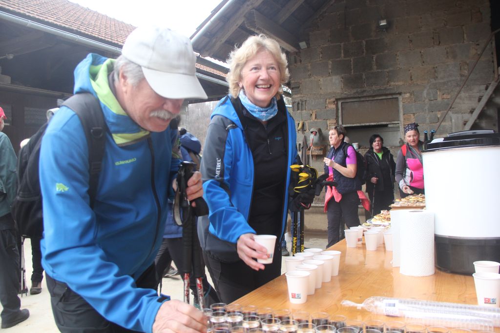 Tako kot vsako leto so tudi tokrat pohodnike, ki so se tudi zaradi ugodnega vremena zbrali v zelo velikem številu (po nekaterih ocenah več kot 200) po prvem delu poti in po vzponu proti Žažarju čaka kratka pavza. Na tradicionalni okrepčevalni postaji v Žažarju na domačiji pri 'Činžarju' so jih pričakale domače dobrote, topel čaj in kuhano vino, da so potem polni energije nadaljevali svojo pot proti Vrhniki. Mojca in Janez Prosen že 14 let gostita pohodnike in z veseljem pripravita vse potrebno, da so pohodniki dobro razpoloženi. Tudi tokrat so ob ritmih domače narodne glasbe, ki jo je zaigral kar hišni 'bend', mnogi pohodniki zaplesali.
