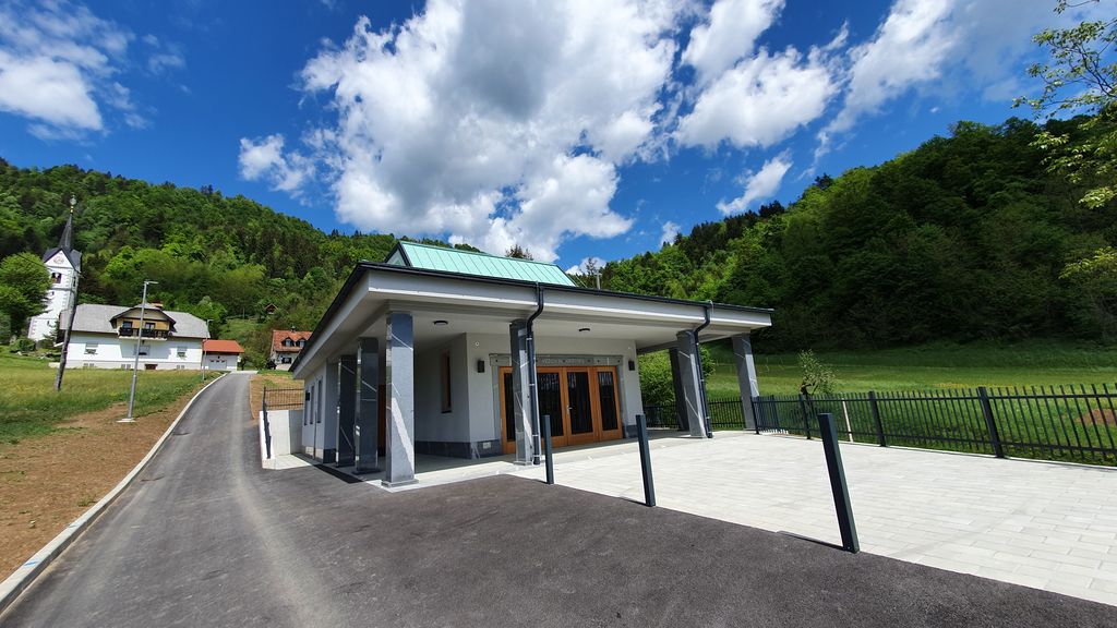 Gre za zanimivo mešanico klasične in moderne arhitekture. Objekt sicer še ni v uporabi, saj še nima uporabnega dovoljenja. Tudi zaradi koronavirusa so se namreč postopki nekoliko zavlekli. A vseeno lahko od daleč pa tudi od blizu že vidite njegovo končno podobo. Zadnja pridobitev je urejena okolica, z velikim tlakovanim dvoriščem, urejeno zelenico in varovalno ograjo. Prav ograja je bila še zadnja na seznamu nujnih del. Sama ograja sedaj lepo dopolnjuje celoten objekt in zaključuje zunanjo podobo poslovilne vežice.