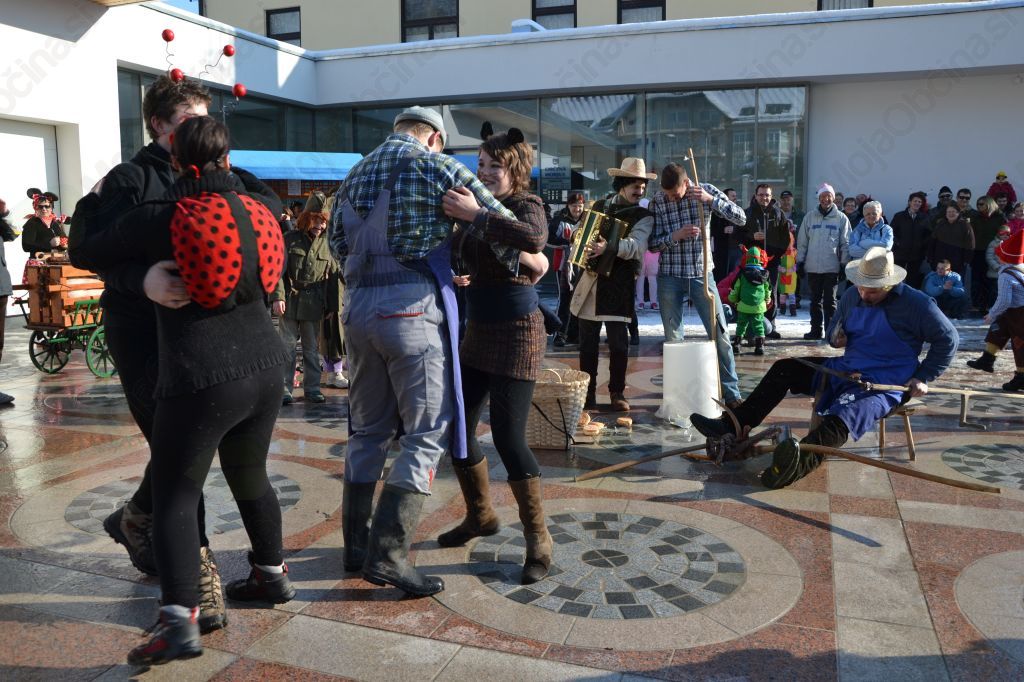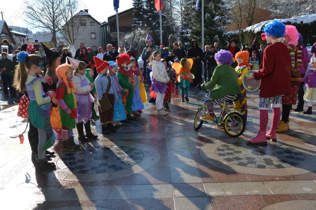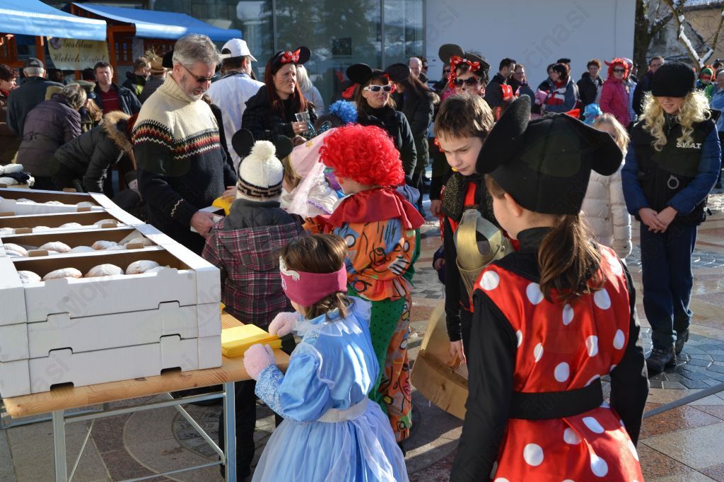 Na pustno nedeljo so se kot že nekaj let zapored zbrale na parkirišču pred Metrelom, nato pa so se ob spremljavi domače glasbe skupaj odpravile po horjulskih ulicah proti Občinskemu trgu. Indijanci, vitezi, čarovnice, princeske, kralji in kraljične, klovni, kmetje, različna pravljična bitja in filmski junaki, pa zmaji, dinozavri, pikapolonice, mucki, miške, slončki, čebelice, prašički, metulji, zvezdice, rožice, sončki ter razni mlečni izdelki; vsi ti in še mnogi drugi liki so se na pustno nedeljo srečali in zarajali na trgu. Nekateri so se predstavili posamezno, drugi v skupini, najbolj zanimivi za občinstvo pa so bili tisti, ki so pripravili prav poseben nastop. Nekaj več pozornosti so pritegnili člani prašičje družine in njim nič kaj prijazna družina mesarjev. Zabavni so bili kmetje, ki so prinesli s seboj tudi instrumente, ter mladi partizani, ki so zapeli pustno priredbo svoje himne. Razred zase pa sta bila gasilec s harmoniko in pomanjšana različica mame Manke, ki sta zbrane na trgu navdušila in nasmejala skoraj do solz. Tam jih je letos nagovorila ena najbolj gledanih in občudovanih slovenskih osebnosti – naša smučarska šampionka Tina Maze, ki sta jo kot vedno spremljala trener oziroma izbranec Andrea Massi ter serviser smuči. Kot po navadi je bila Tina zelo zgovorna in ves čas v središču pozornosti. Zaupana ji je bila vloga povezovalke, kar ji je šlo odlično od ust, le ženska sklanjatev ji je včasih delala preglavice. Za obiskovalce je celo odpeljala trening smučanja, predvajan sicer v počasnem posnetku. Skratka, vse se je vrtelo okoli nje, ki je imela najverjetneje tudi zadnjo in končno besedo pri ocenjevanju najboljših pustnih mask; tu so ji sicer pomagali še preostali člani TD Horjul. Nagrade za malo večje maškare so bile letos poleg simboličnih še mesnate, te pa so si za izvirnost in enkratnost zaslužili pujsja družina, skupina Miki Mišk, viteški par ter pravljični liki iz Sneguljčice. Nagrade za otroke pa so bile letos sladke. Prvo sta si zaslužila gasilec in mama Manka, vsi preostali pa so si sladkarije podelili med sabo. Prav vsaka maškara, tudi tista nenašemljena, je dobila pustni krof; te so med navzoče razdelili člani TD. Tudi za toplo pijačo so poskrbeli. Ta je vsaj za trenutek pognala kri po žilah in odgnala mraz, a ne mrzle zime, ki nas bo spremljala še dobršen del meseca.