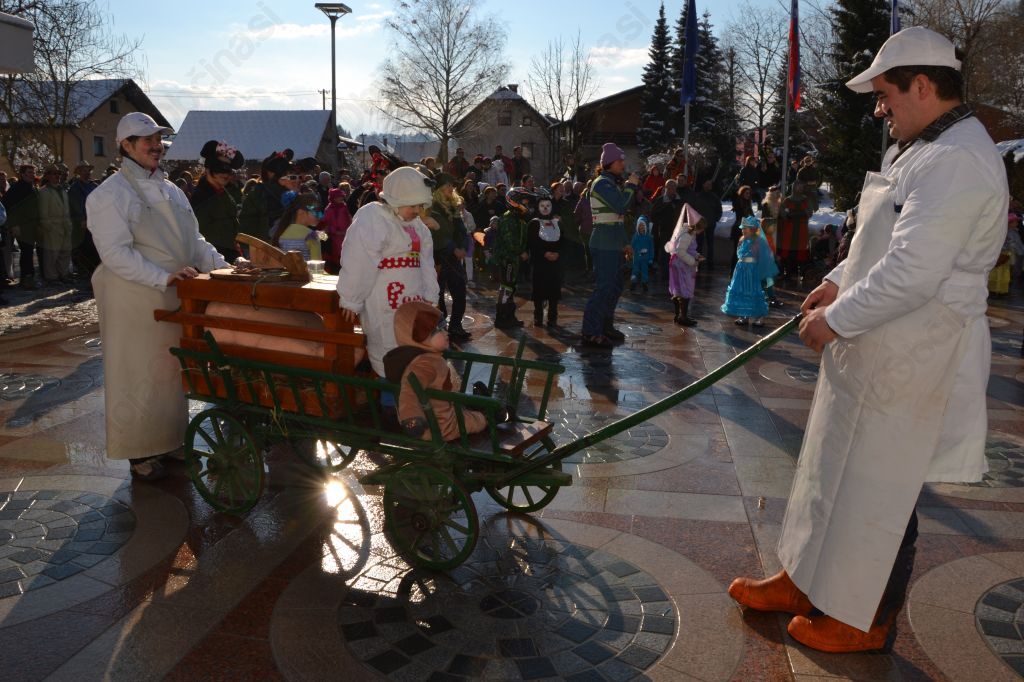 Pustne maškare so se na pot podale že na pustno soboto. Hodile so od vrat do vrat, prosile za kak pustni krof ali pa evro ali dva. V zameno naj bi v hišo prinesle srečo in v vas pomlad. Toda obljube niso držale, vsaj te zadnje ne. Svojo nalogo so slabo opravile. Pustni čas je namreč že mimo, naravo pa še vedno prekriva debela snežna odeja. Toda maškare so se potrudile, saj se jih je na pustno nedeljo zbralo lepo število.