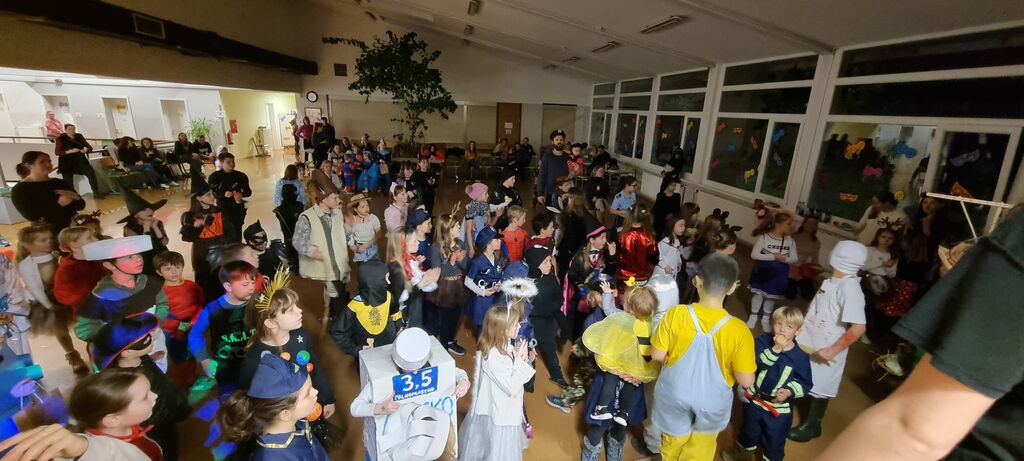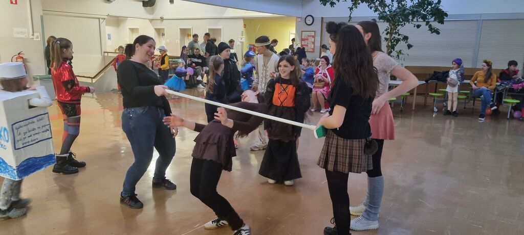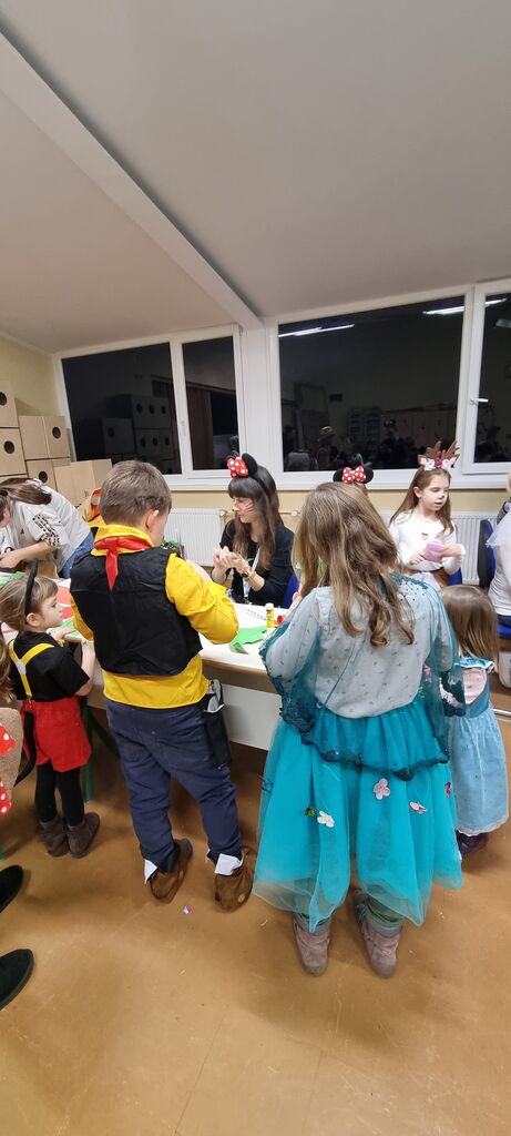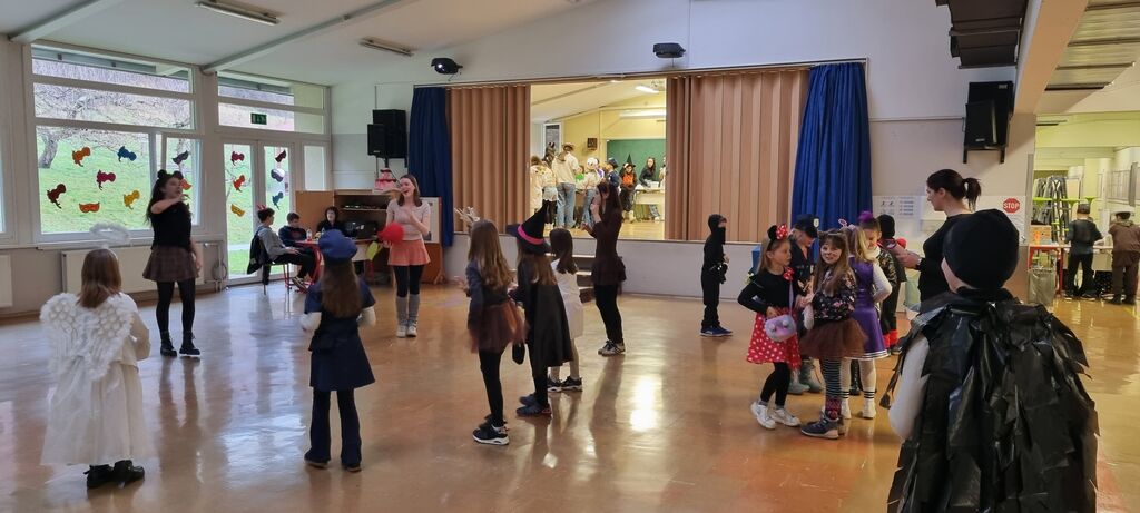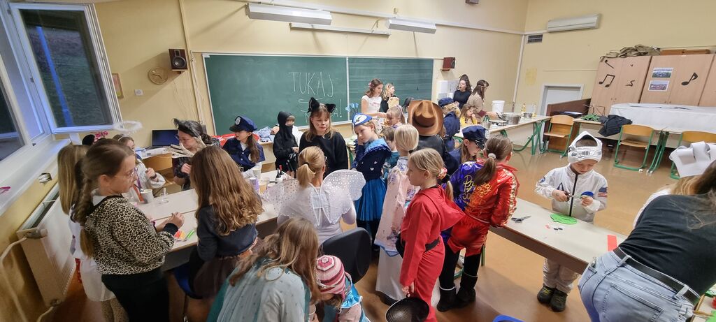 Ples smo tako organizirali v četrtek, 12. 2. 2026. Tudi letos smo poskrbeli za pestro dogajanje. Učiteljice so pripravile zanimive ustvarjalne delavnice: otroci so si lahko izdelali svojega sluzkota ali simpatično žabico. Preizkusili so se lahko v družabni igri štrbunk, če so bili uspešni pri metanju blazinic, so lahko prejeli sladko nagrado. Na plesišču v jedilnici so se pustne maske zavrtele v ritmu številnih znanih pesmi. Ko so se utrdile, so se lahko odžejale s pijačo ali potešile lakoto s slastnimi palačinkami ali krofi.