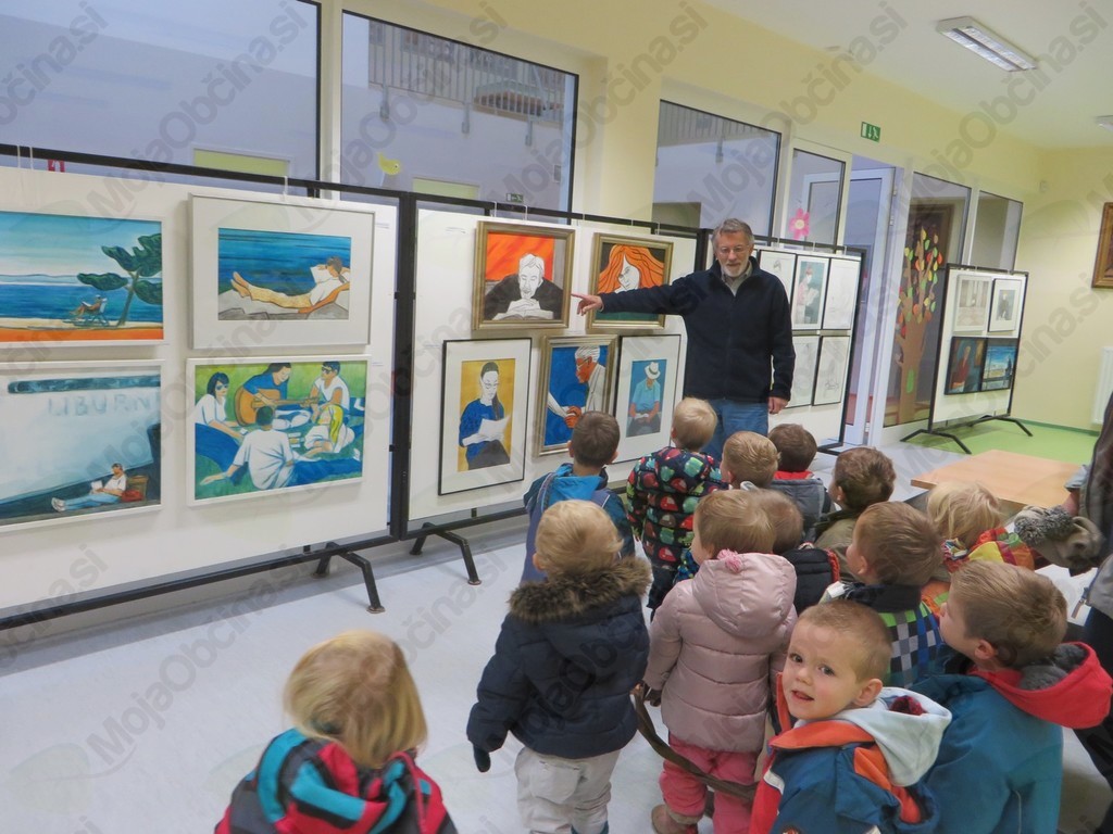 December v našem vrtcu vsako leto pomeni niz prijetnih doživljajev. Prva, ki smo se je letos razveselili, je bila slikarska razstava Bralnica, od 3. do 10. decembra v šolski knjižnici. Razstavljene so bile slike Branka Lipnika, skupni motiv pa je bilo branje. Branko Lipnik je kar nekaj let preživel med horjulsko mladino in še vedno rad ohranja stik z najmlajšimi. Nekajkrat nas je že razveselil z lutkovno predstavo, ki jo je pripravil in nam jo zaigral, včasih nas obišče in z nami ustvarja, včasih pa se srečamo tudi kje na sprehodu. Vedno nas je vesel. Tokrat je pobrskal med svojimi izdelki in izbral slike ter risbe, na katerih so upodobljeni bralci. Da ne beremo le knjig, ampak tudi časopise, sporočila na telefonu, novice na tablici … so povedali tudi otroci. Po ogledu razstave smo srečali umetnika in mu zaupali svoje vtise z razstave. Otrokom pa je bila všeč tudi šola z novo knjižnico, predvsem najstarejšim, ki bodo jeseni postali prvošolčki.