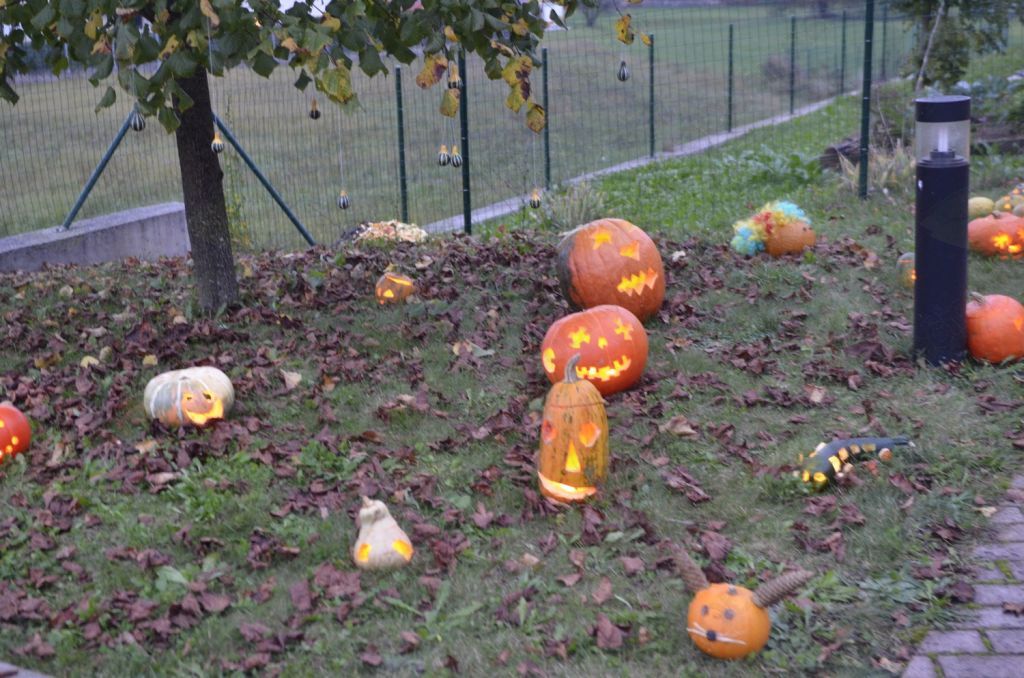 V mlajših skupinah so otroci buče opazovali, jih kotalili v krogu, se z bučami igrali skrivalnice ter jih prevažali s samokolnico in drugimi vozili. V starejših skupinah pa so se buče spreminjale v različne živali, vozila, hišice, svetilke in strahce. Ravno nad temi so bili otroci najbolj navdušeni in so komaj čakali večera, ko smo s strahci in drugimi izdelki ob prižganih svečkah pričarali pravljično vzdušje. Ob ustvarjanju pa se je po vrtcu širil prijeten vonj po bučnih sladicah, ki so nastajale po skupinah. Letošnja Bučijada je bila zelo dobro obiskana, tako s strani staršev kot drugih krajanov. Bili smo veseli čudovito izrezljanih buč in drugih razstavljenih izdelkov, ki so nastajali doma, v družinah, in so obogatili našo razstavo. Vsem hvala za sodelovanje in za podarjene buče. Otroci so se razveselili srečanja s prijatelji in se z njimi poveselili na parkirišču vrtca.