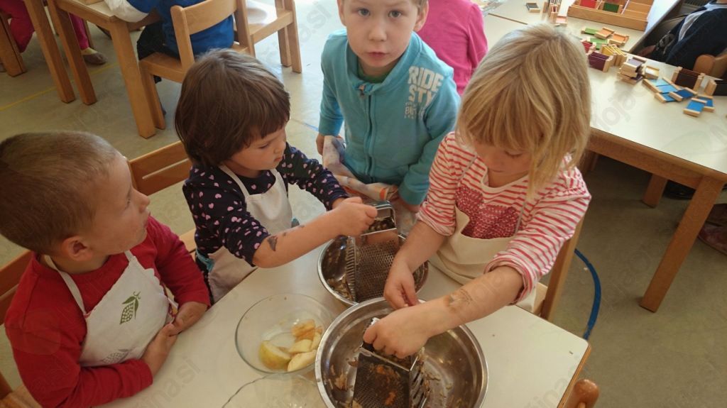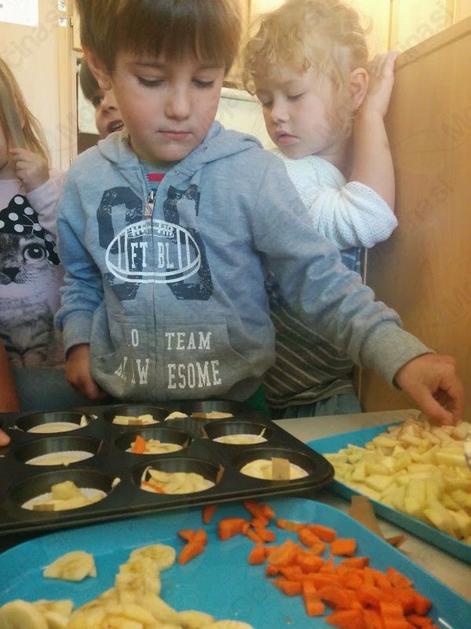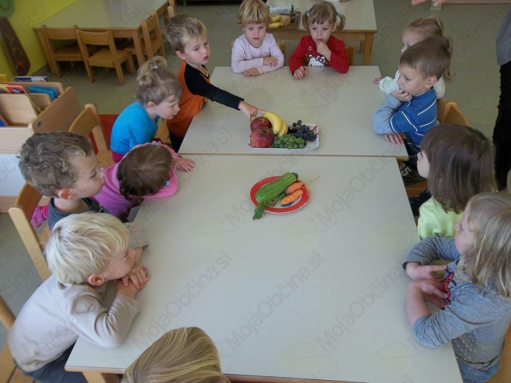 Današnji način življenja nas velikokrat prisili, da se nezdravo prehranjujemo. Ker pa se zavedamo, da je zelo pomembno, kako prehranjevanje dojemajo otroci, jih želimo že zgodaj seznaniti z zdravo prehrano. Eden od načinov so tudi dnevi sadja in zelenjave, ki jih zdaj že tradicionalno prirejamo v septembru. Vsako leto se po skupinah odvijajo različne dejavnosti, preko katerih otroci spoznavajo sadje in zelenjavo, ju opazujejo, opisujejo, tipajo in okušajo. Letos smo pripravili didaktične igre, v katerih smo spoznavali živila, predvsem pa smo pripravljali napitke, pekli jabolka, korenčkove kolačke, jabolčni zavitek, presni jabolčni zavitek, pripravili smo sadne ježke, sušili sadje itd. Otroci so pri pripravi aktivno sodelovali, saj so tako dogajanje spremljali bolj doživeto. Njihov odziv je pokazal, da so bili zadovoljni. Ob tej priložnosti se za sodelovanje zahvaljujemo tudi staršem, ki so nas obdarili s sadjem in zelenjavo, da smo lahko izvedli dejavnosti.