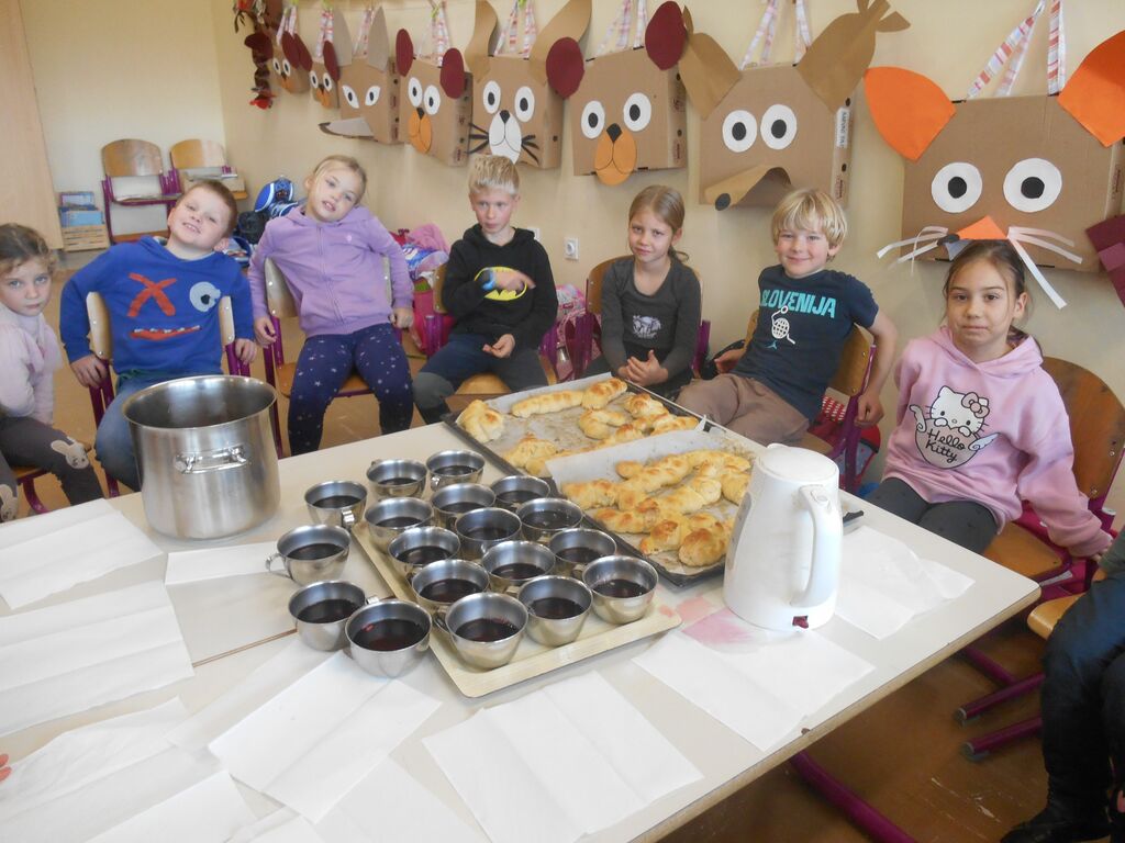 Pripravili smo si še čaj in uživali ob še toplih pletenicah. Naši trebuščki so