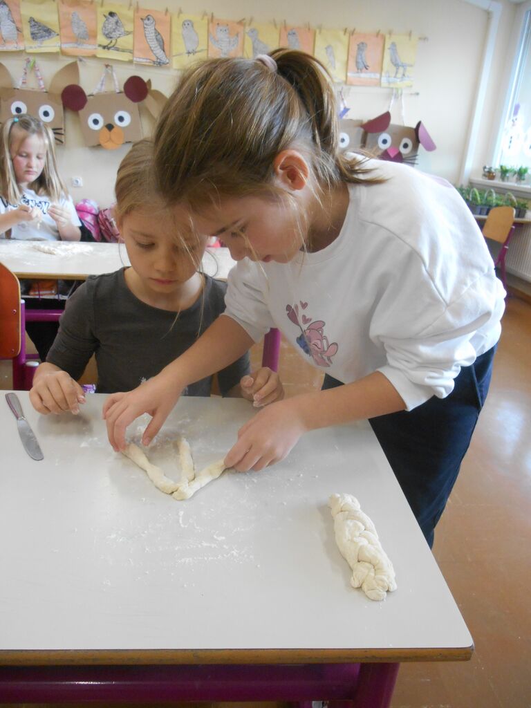 kruhek še doma. Pletenice so se pekle, mi pa smo poslušali zgodbice o kruhu.
