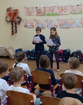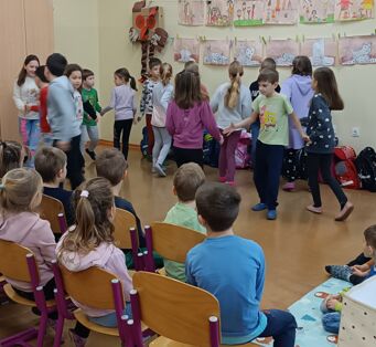 in Pod medvedovim dežnikom. Vse smo povezali z uvodno napovedjo. Predstavili smo se svojim družinam, otrokom iz vrtca in prvošolcem. Našim najmlajšim prijateljem, otrokom iz