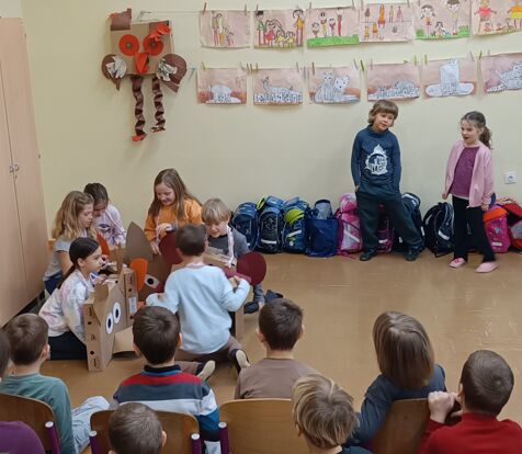 verigo, rašplo in vrečo šivat. B razred je pripravil lutkovni predstavi Zrcalce