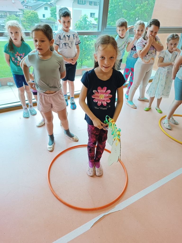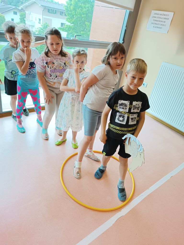 Vitezi so neustrašni, dobrosrčni, zvedavi junaki. Horjulski prvošolci smo se v petek želeli preizkusiti v viteštvu. Za nas je bil to športni dan. Zjutraj smo razveselili varovance doma starejših v Horjulu. Zaplesali smo jim splet ljudskih plesov. Najprej smo vili kačo Diradi čindaro, potem Abrahama, pa Šuštarsko polko in Ob bistrem potočku je mlin. Ljudskim plesom smo dodali še moderne ritme. Zaplesali smo Račji ples. Tega smo večkrat ponovili in se podružili z varovanci. Podarili smo jim igračko, ki smo jo izdelali za vsakega. Iz papirja, pokrovčka in plastelina smo ustvarili gugajočega se dedka in babico. Gospe in gospodje so bili igračke veseli in so se igrali z njimi in nami. Nazadnje smo z vzgojiteljem iz Doma zaplesali Makareno. Ples in igra sta nas povezala in razveselila. Obljubili smo, da še pridemo na druženje v Dom. V šoli nas je čakala malica in zatem viteški izzivi. Razdelili smo se v viteške čete in zavzeli športno dvorano. Na konjičkih smo kakor pravi vitezi jezdili okrog in preko preprek tako smelo, da smo premagali strašnega zmaja in zmagoslavno častili sebe, ki smo povezani zmogli preko vseh zmajevih ovir. Srca so močno utripala, malo zaradi napora, malo od sreče. Ob koncu dneva smo le še ugotovili: »Lepo je živeti kakor vitez!«