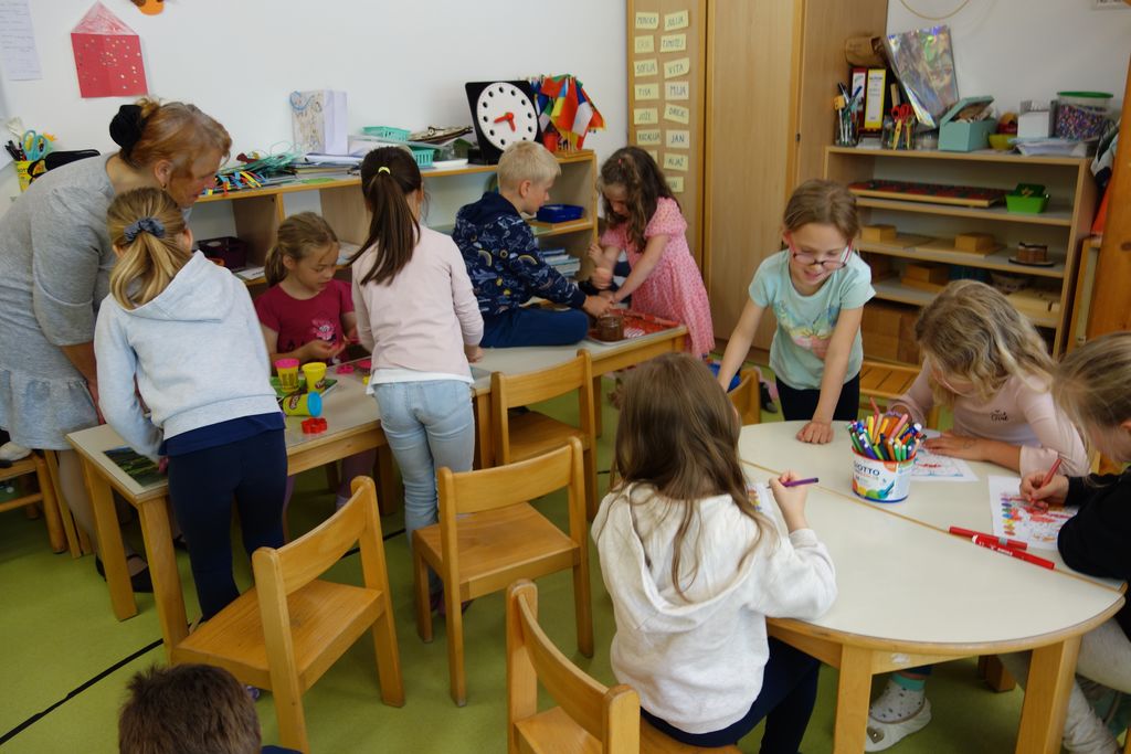 Majhni otroci domujejo tam, kjer so doma majhne stvari. Med majhnimi mizicami in stolčki, majhnimi ležalniki, majhnimi lončki in krožnički. Poličke so polne igrač, po katerih segajo majhne dlani. Medtem pa majhne dlani zrastejo, zrastejo pa tudi majhne punčke in fantki in kar naenkrat pomahajo v slovo svojim vzgojiteljicam in vrtcu. S pisanimi torbami na ramah se neke jeseni čisto zares podajo v pravo šolo. V vrtcu ostanejo mlajši prijatelji in vzgojiteljice, igralnice, igrače in topli spomini. Preden pa otroci zares prestopimo v šolo, jo spoznavamo po malem. Prvošolci nas povabijo na igrice, ki so se jih naučili in nam zapojejo pesmice. Ko se pomladi vpišemo v šolo, nas pričakajo učiteljice s pravljicami, skupaj si izdelamo lutko ali igračko. Navadno se s prvošolci pred počitnicami skupaj poigramo na šolskih igralih, letos pa smo metulji in čebele povabili šolarje nazaj v vrtec.
