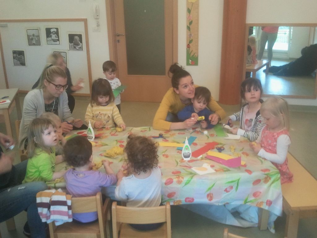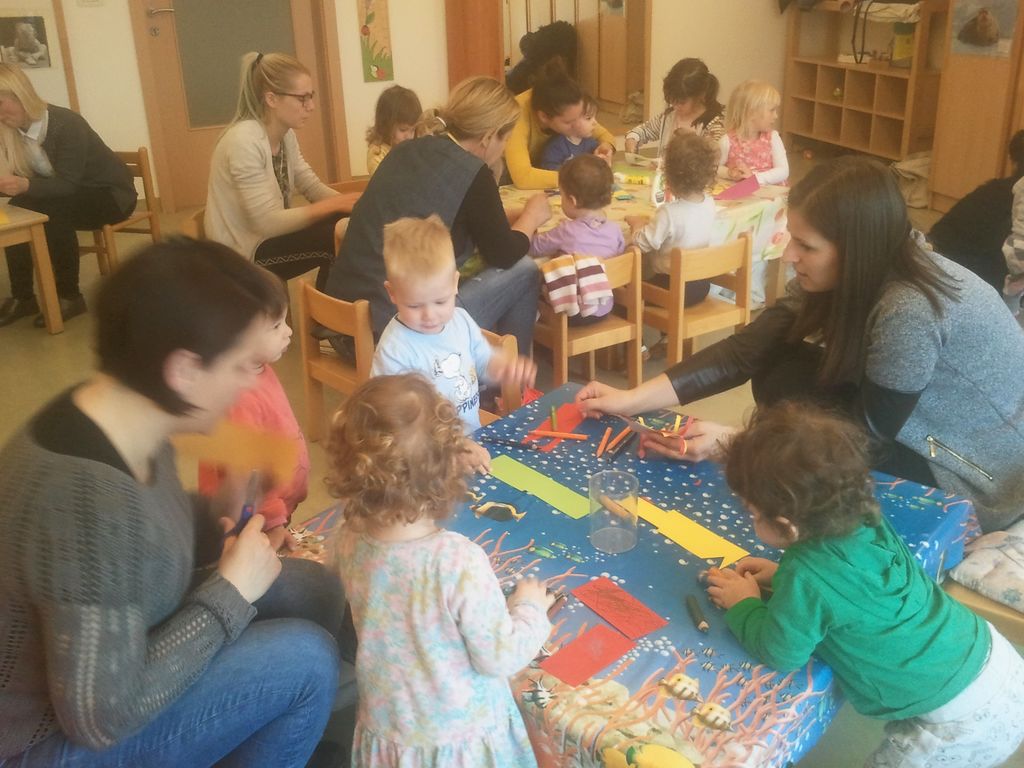 Tudi najmlajši našega vrtca so bili veseli, da so se ob ustvarjanju s plastelinom in barvanju kokošk lahko stisnili k staršem in skupaj preživeli del dneva.