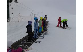 Otroci so se z navdušenjem preobuli v smučarske čevlje in si nadeli smuči. Nato so se s svojimi vaditelji odpravili na smučišče in se pred začetkom smučanja ogreli s telesnimi vajami. Čeprav je bilo smučanje na začetku, ko otroci (sploh začetniki) še niso imeli kondicije, naporno, so ob spustu s hriba doživeli tako veselje, da so bili ves čas našega tečaja vsi zelo motivirani. Med smučanjem so imeli odmor, ko so se lahko osvežili s toplim čajem, nato pa so tečaj nadaljevali. Zadnji dan so otroci svoje znanje pokazali še na smučarskem tekmovanju. Tečaja se je udeležilo 42 otrok.