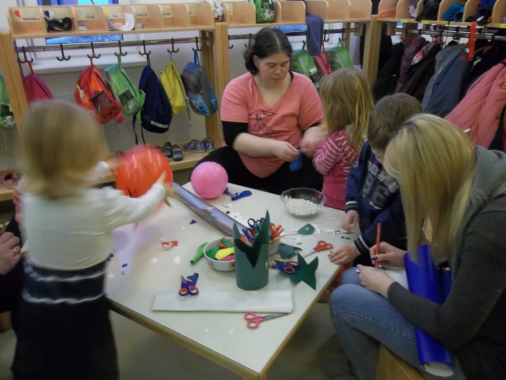 V februarju smo v skupino Čebele povabili mamice. Kot po navadi so si tudi tokrat otroci zavihali rokave in čistili igralnico ter pomagali pri urejanju materialov, da bi bila igralnica čim lepša, ko bodo vanjo vstopile njihove mame. V sredo, 22. februarja, malo pred peto uro popoldan so se že slišali prvi veseli glasovi pred vrati vrtca. Otroci so s svojimi mamicami v dobrem razpoloženju in zelo urejeni prihajali v vrtec. Svoje mame so popeljali v garderobo, kjer so se najprej uredili, nato pa odšli v igralnico, kjer so lahko delali s pripravljenimi materiali. Na hodniku so imeli pripravljeno še glasbeno delavnico, v kateri so izdelali ropotuljo iz balona, ki so ga napolnili z rižem. Otroci so si tako v prvem delu večera z mamami lahko prosto izbirali dejavnosti. Po približno eni uri smo zaključili s samostojnim delom in pripravili igralnico za skupno dejavnost. Posedli smo se na stole v krogu ter se prešteli. Videli smo, da se je današnjega večera udeležilo 43 otrok s svojimi spremljevalci, ter ugotovili, da sta manjkala le dva prijatelja. Zanju smo zapeli bans Gremo lovit medveda. Sledila je zvočna pravljica, pri kateri so udeleženci sledili zgodbi ter jo spremljali z ustreznimi instrumenti glede na prikazano sliko. Po zgodbi je sledila igra tišine, v kateri so otroci svojim mamicam razdelili obeske za ključe iz filca v obliki ovčke, ki so jih ob manjši pomoči izdelali sami. Ura se je približevala pol sedmi zvečer in večer z mamami se je počasi približal koncu. Sledila je še manjša pogostitev s suhim sadjem in sokom. Mame so si med seboj izmenjale še nekaj besed, otroci nekaj navihanih zamisli, nato pa so se počasi odpravili proti domu. Vrata vrtca so se zaprla še za zadnjimi obiskovalci. O veselem dogajanju v vrtcu so govorili le še papirčki, ki so ostali po mizah in tleh, ter stoli in mize, ki jih je bilo treba pripraviti, da se bodo otroci v naslednjem dnevu lahko nemoteno igrali in obujali spomine na popoldne, ko so v vrtec pripeljali svoje mamice.
