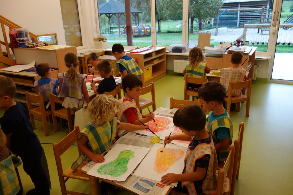 zelenjave so otroci tudi veliko ustvarjali. Risali so z voščenkami in slikali s