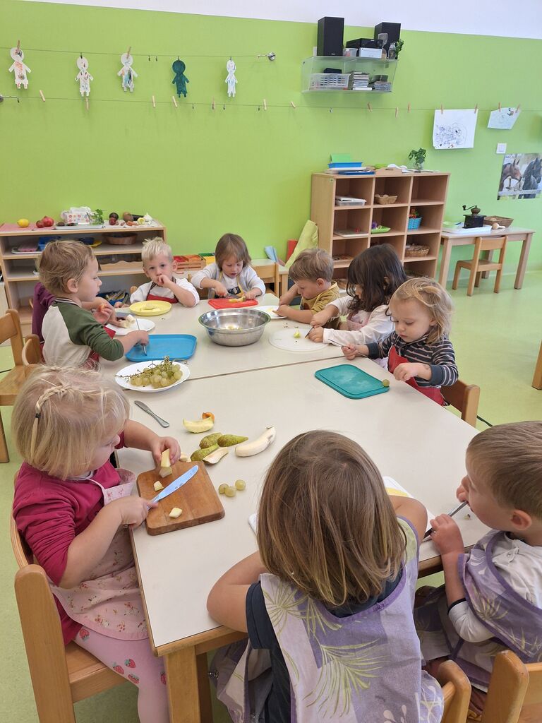 in banane. Vzgojiteljice opažamo, da otroke njihovo sodelovanje pri pripravi