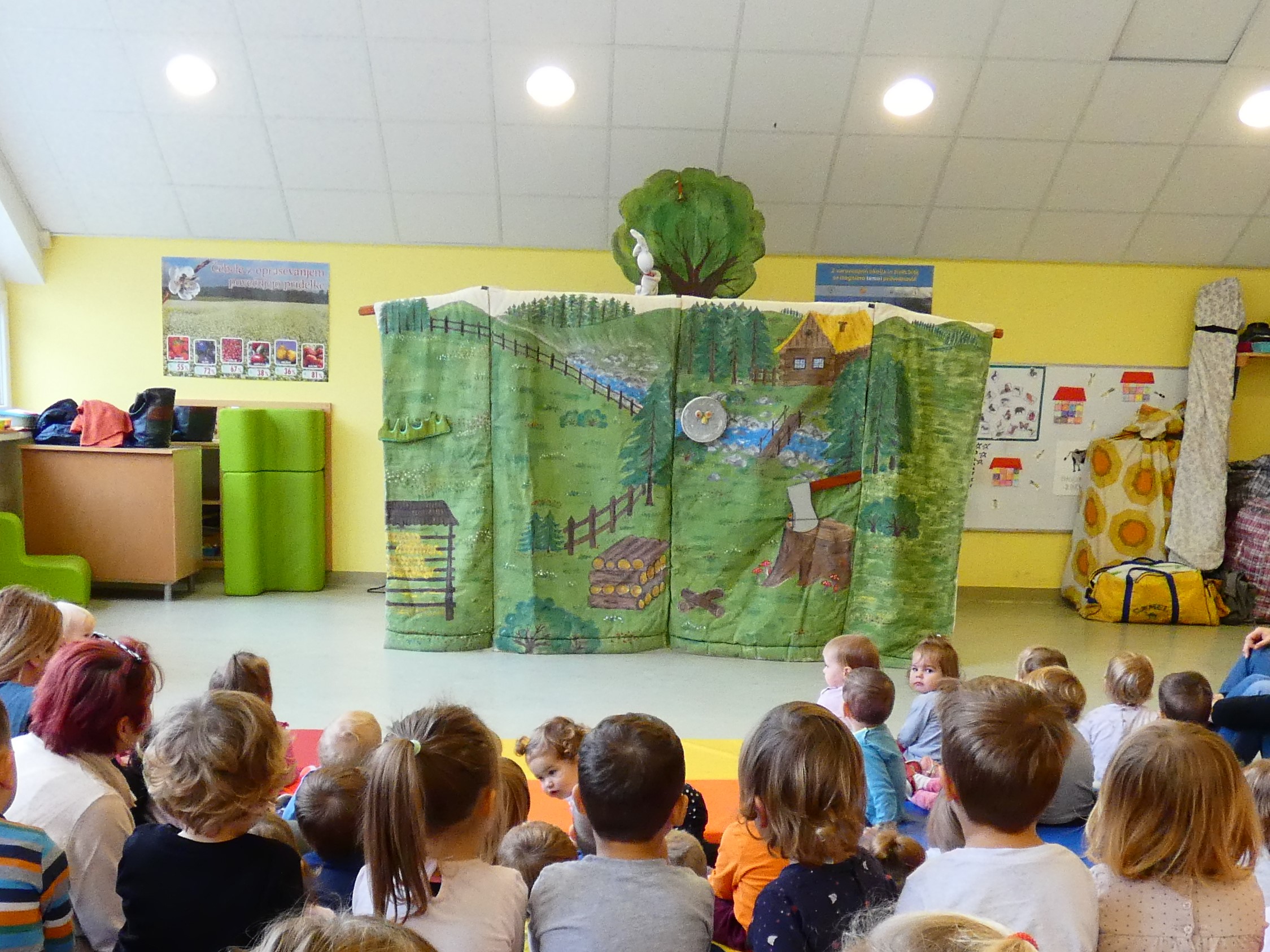Obisk lutkovnega gledališča je res poseben dogodek, prav tako smo veseli, kadar lutke sprejmemo v našem vrtcu. Igralki Teatra za vse sta v torek, 19. novembra, najmlajšim otrokom v našem vrtcu zaigrali pravljico Zajčkov zvonček, starejše skupine so si ogledale predstavo Od semena do župce. Vsi skupaj smo bogatejši za novi pravljici in novo, lepo doživetje.