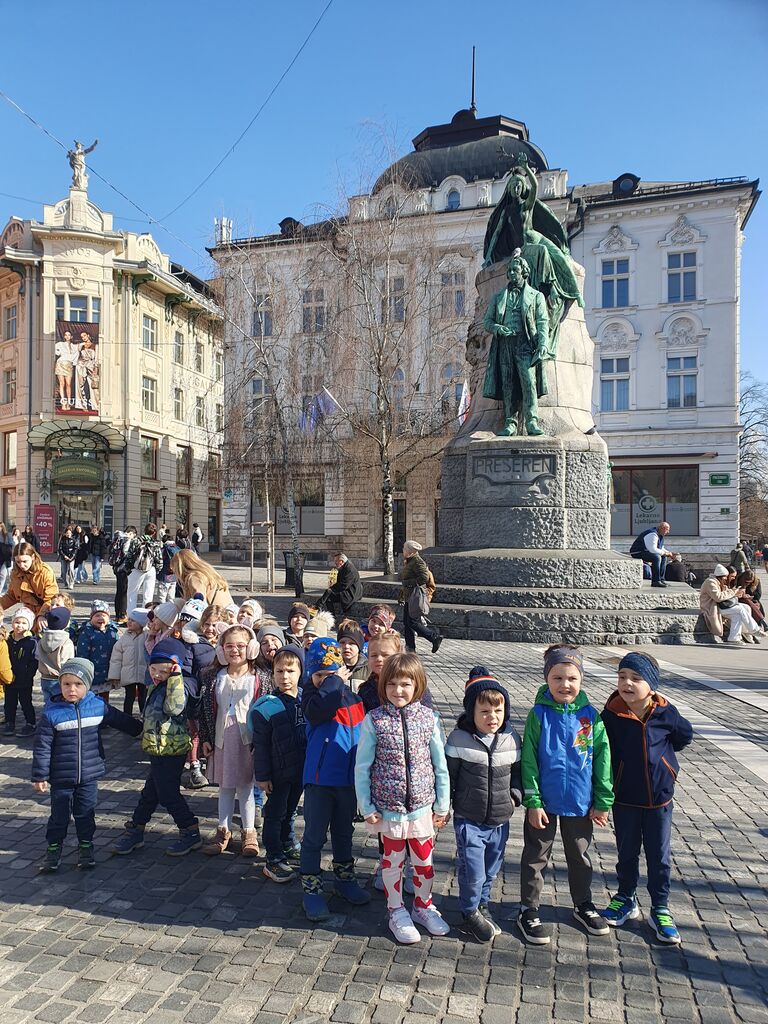 Po končani predstavi smo sončno, spomladansko vreme izkoristili še za kratek sprehod po Ljubljani. Ogledali smo si mogočni zmajski most in tromostovje, pa Prešernov in Kongresni trg, več cerkva, meščanske hiše in kavarne. Posebej zanimiva nam je bila reka Ljubljanica, od daleč pa nas je navdušil tudi Ljubljanski grad. Težko bomo pozabili prijeten vonj cvetlic, mimo katerih smo se sprehodili na tržnici in pa ptičje hišice, ki so krasile ulico do Kongresnega trga. Za konec smo nekateri ravno pred odhodom na avtobus videli Martina Krpana in njegovo kobilico, ki sta pokukala izpod ure na strehi Lutkovnega gledališča. V Ljubljani smo preživeli krasen dan in komaj čakamo, da se vrnemo prihodnje leto!