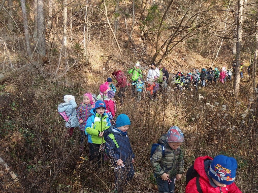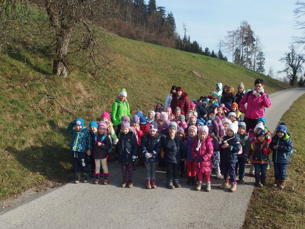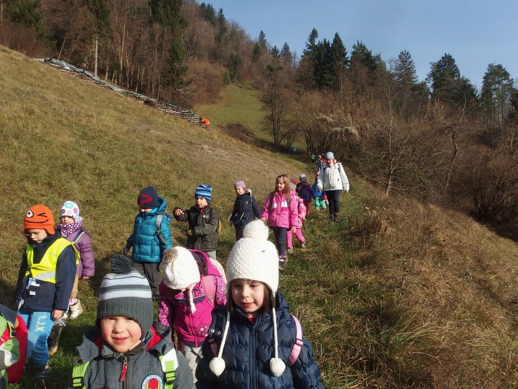 V začetku decembra smo izvedli planinski izlet v okviru projekta Mali sonček. Ker nam jo je nekajkrat zagodlo deževno vreme, smo jesenski planinski izlet prestavili na zadnje dni jeseni. G. Seliger je tokrat poiskal pot po okoliških hribih, ki nam je manj znana. Šli smo okoli Baševega griča. Pot navzgor iz Ljubgojne se vije skozi gozd. Tla so bila še nekoliko blatna, kar je bilo otrokom še posebej zabavno. Ustavili smo se v bližini Polževe domačije, kjer smo pomalical in se po drugi poti spustili nazaj do Ljubgojne. Na tako vreme, kot smo ga imeli tokrat, se je splačalo počakati. Spremljalo nas je sonce, dobro voljo pa smo imeli s seboj. Veselimo se zimskega pohoda, za katerega upamo, da ga bomo prehodili po snegu. Zahvaljujemo se g. Bogdanu Seligerju, ki je izlet pripravil in nas spremljal na poti.