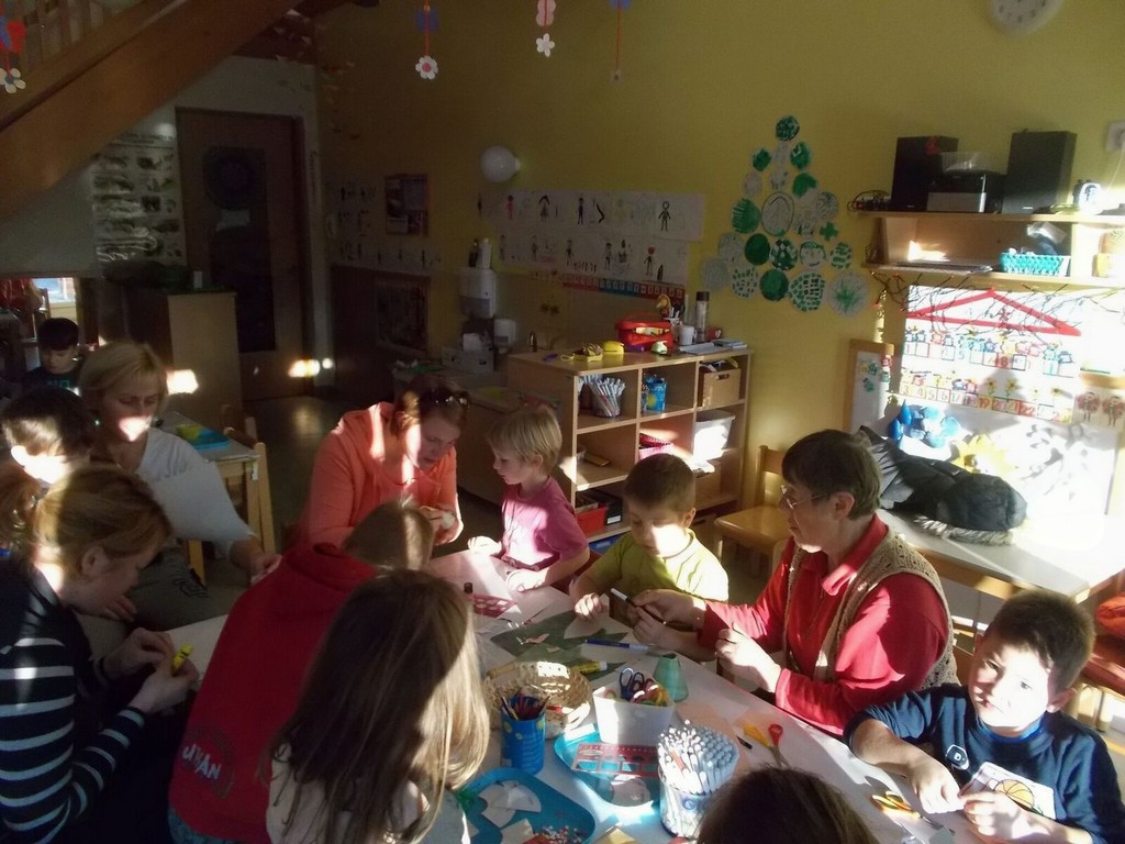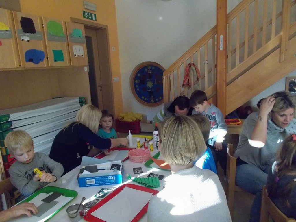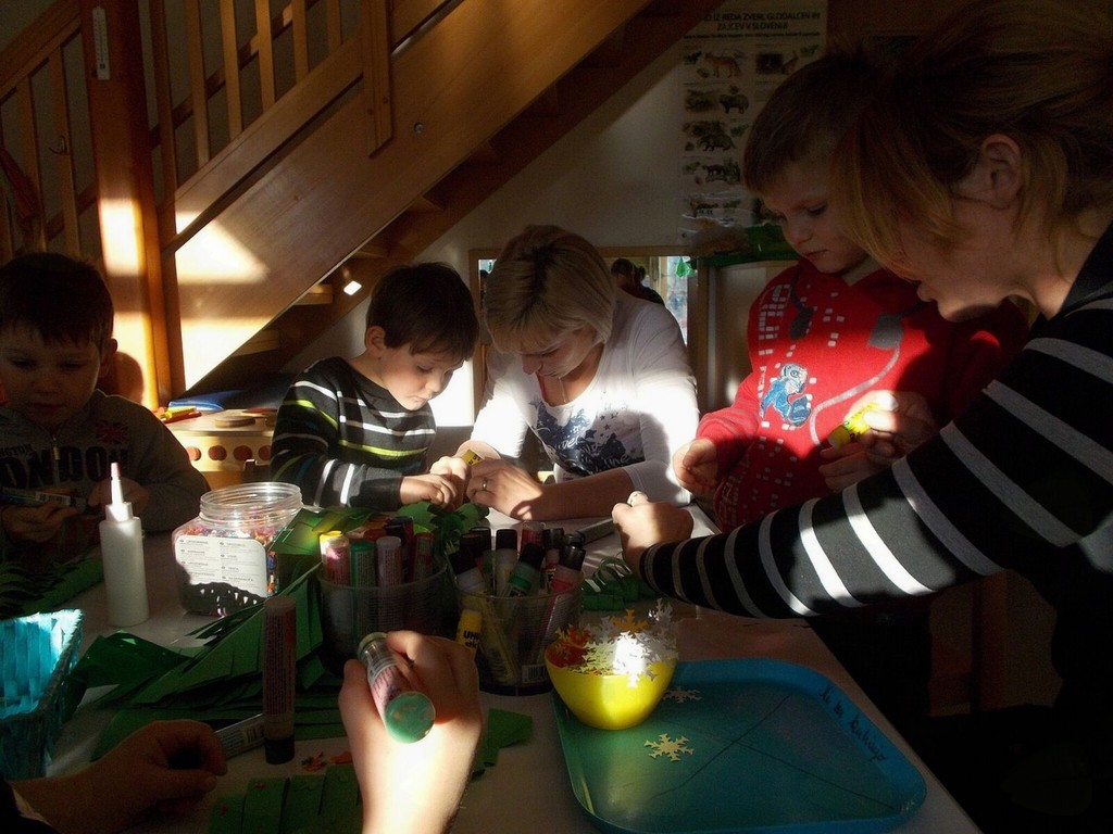 December je čas, ko si zaželimo topline in druženja s prijatelji. V vrtcu se radi družimo med seboj, povabimo različne goste in seveda tudi starše naših otrok. Vzgojiteljice pripravimo različne obogatitvene dejavnosti. Decembra smo pripravile ustvarjalne delavnice za starše in otroke. V manjših skupinah so izdelovali novoletne okraske iz slanega testa, okraševali steklene lončke s papirnatimi prtički, ustvarjali snežake iz nogavic, ki so jih napolnili z rižem, ter voščilnice. V starejših skupinah so iz kosmate žičke ustvarili veliko dimnikarjev, okraskov za božično žito, palčkov in smrečic iz papirja ter posebne voščilnice, ki so jih okrasili z zdrobom in bleščicami. Prazničnih delavnic se je udeležilo veliko staršev. Ob zaključku smo si zaželeli srečno, zdravo in ustvarjalno novo leto z veliko otroškimi nasmehi.