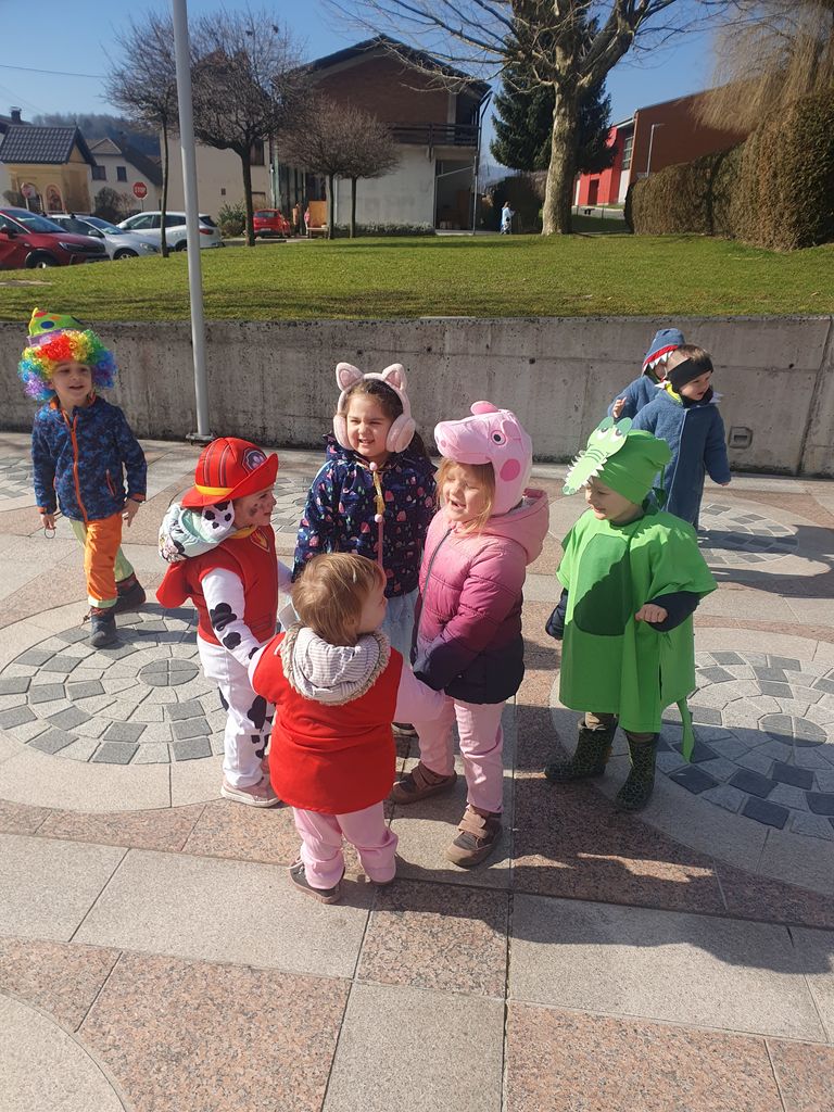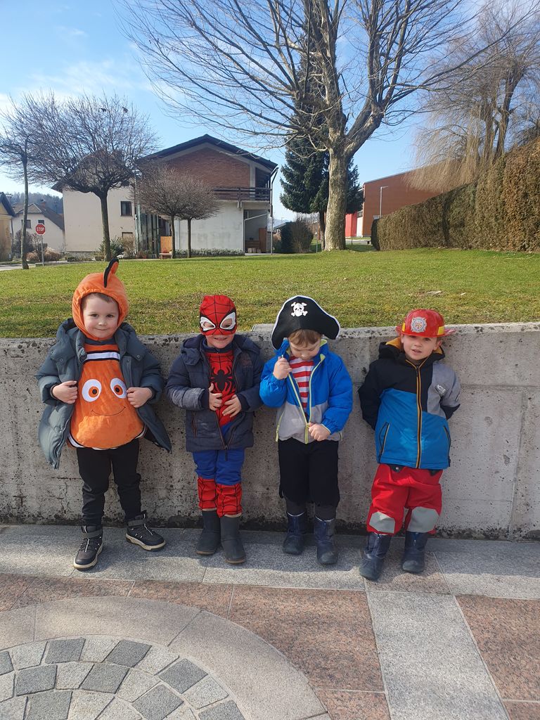 Na težko pričakovani pustni torek pa so v vrtec namesto otrok prišle izvirne pustne šeme, odločene, da iz naših krajev prepodijo zimo in prikličejo pomlad. Našemljene maškare so ponosno razkazovale svoje kostume in komaj čakale slasten pustni zajtrk – krofe. Po zajtrku pa je napočil čas za pravo pustno rajanje.