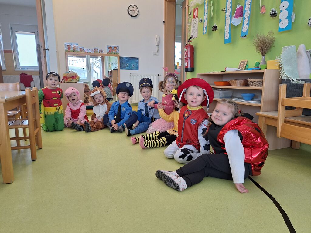 Na pustni torek, 17. februarja, so v naš vrtec prišle prekrasne maškare. Otroci so se prelevili v princeske, vile, metuljčice, čebelice, gasilce, policiste ter hrabre junake. Najmlajše pustne šeme so se zabavale v telovadnici v vrtcu, kjer so plesale in rajale ter se igrale z baloni. Starejši otroci so se ob spremljavi malih glasbil in glasbe odpravili na pustno povorko po Horjulu in tako odganjali zimo. Ob tem smo prepevali pustne pesmi. Najprej smo razveselili zaposlene na Občini Horjul, nekaj pustnih šem je ostalo na občinskem trgu, kjer ni manjkalo rajanja, razigranosti, druženja, smeha in dobre volje, ostali pa so se odločili, da nadaljujejo s pustno povorko po Horjulu ter tako še naprej razveseljujejo ljudi, odganjajo zimo in prikličejo pomlad.