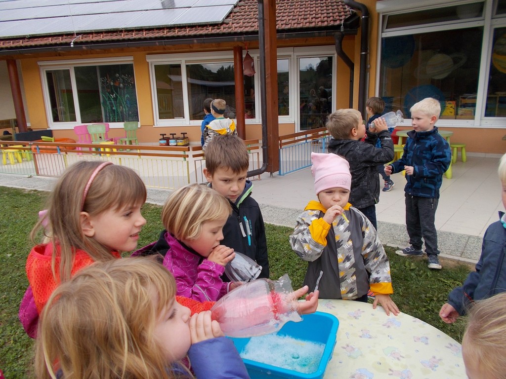 V našem vrtcu smo pripravili različne dejavnosti. Otroci so ustvarjali v likovni in lutkovni delavnici. Izdelovali so jesenske liste in oblikovali slano testo ter naredili lutke, s katerimi so kasneje nastopili v lutkovni predstavi z naslovom Kdo gre z nami v gozdiček. Ogledali so si lutkovno predstavo Palček Pohajalček, ki so jo pripravile in izvedle vzgojiteljice. Odšli smo tudi na orientacijski pohod čez Ljubgojno, na Tičnico prek Vovčn in nazaj do vrtca. Na poti so otroci reševali različne naloge. Za zaključek tega tedna pa so uživali še v »deželi milnih mehurčkov«, kjer so mehurčke pihali in lovili. Teden je bil razigran in ustvarjalen. Otroci so v dejavnostih uživali in bilo nam je lepo.