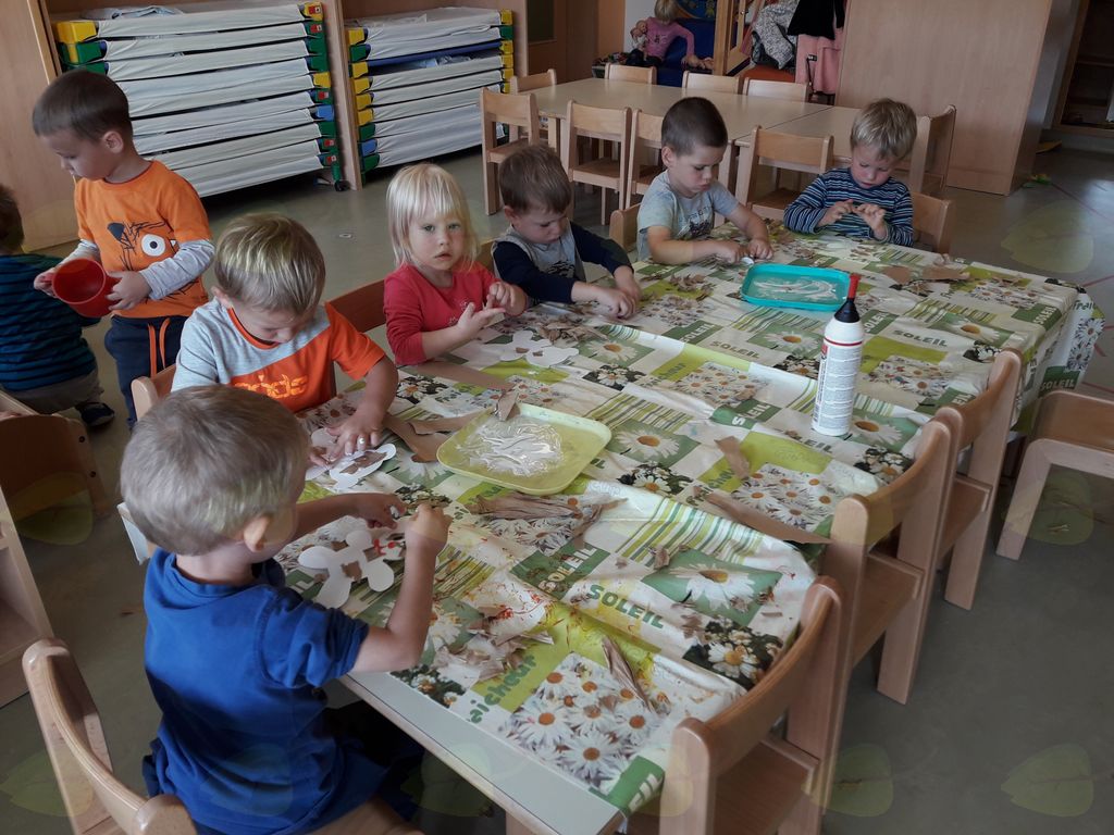 Mlajši otroci so uživali v gnetenju, tipanju in oblikovanju testa; starejši pa so si izdelali gozdne živali z likovno tehniko trganka – lepljenka.
