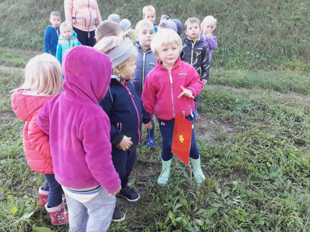 Mlajši otroci so na igrišču, starejši pa v bližnji okolici iskali pravo smer poti in reševali zanimive naloge.