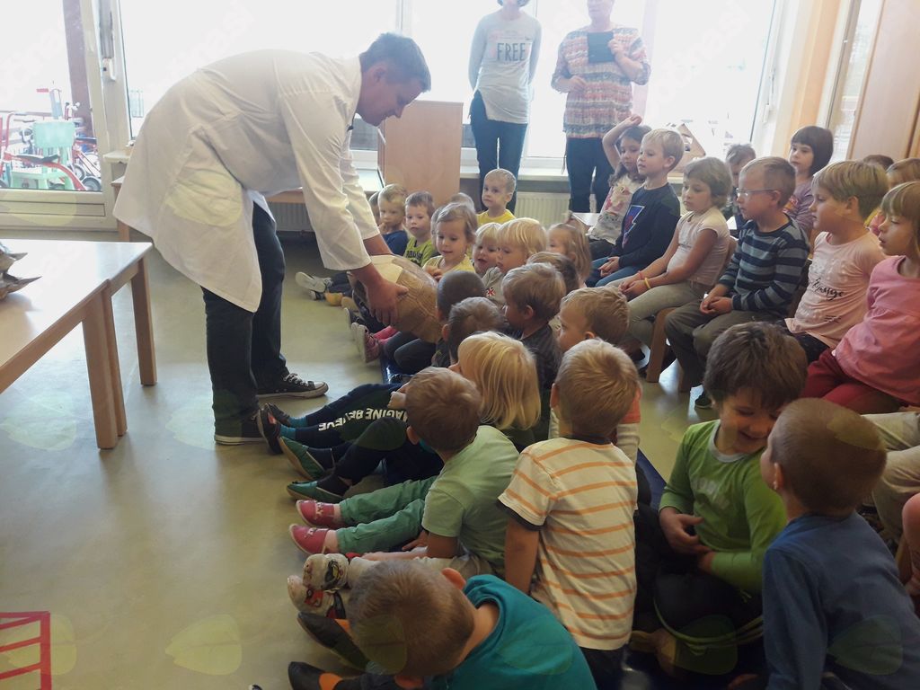 Obiskala sta nas Lukova starša iz skupine Pikapolonic in otrokom predstavila poskuse s tekočim dušikom. S seboj sta prinesla nojevo jajce in oklepa želv velikank, kar so si otroci z zanimanjem ogledali.