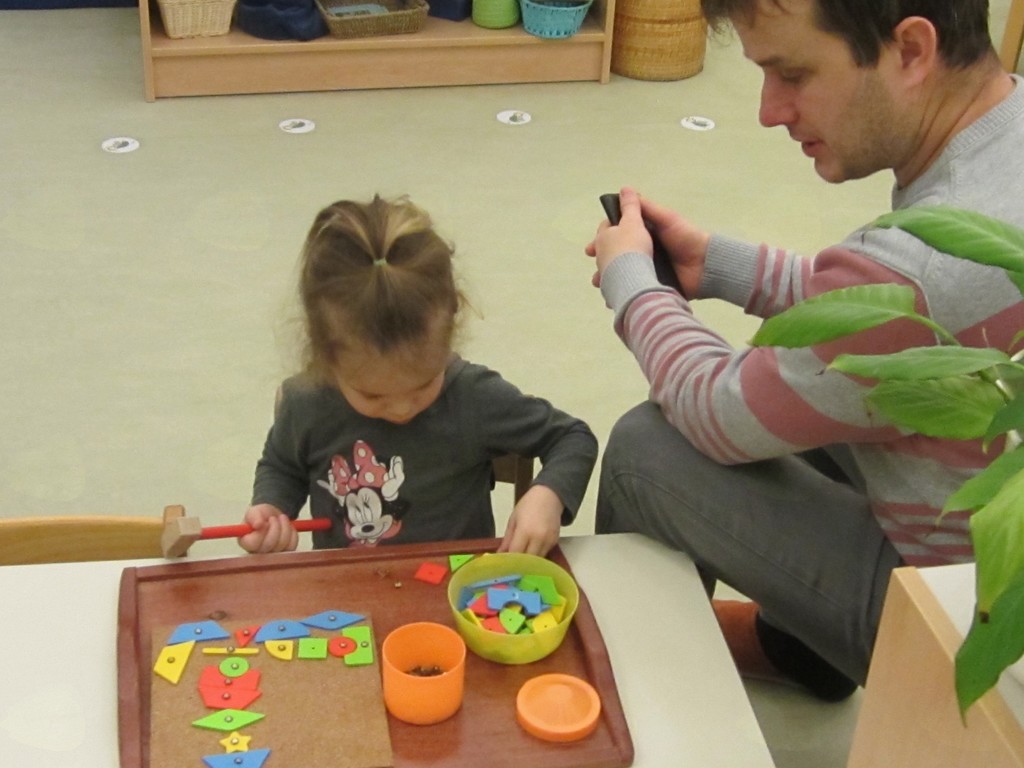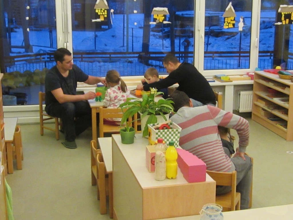 Vsak naslednji januarski dan je bil bližji posebnemu in težko pričakovanemu dogodku, ki smo ga poimenovali večer z očeti. V četrtek, 19. 1., smo v skupino Kresnice povabili svoje očete, da z nami preživijo del popoldneva. Obiska očetov smo se zelo veselili in se zadnje dni pred obiskom o tem veliko pogovarjali. V prijetnem vzdušju so otroci z veliko vnemo kazali svojim atijem, kaj počnejo v vrtcu, ko so oni v službi. Pokazali so jim, kako zanimivo je delati z vodo, presejati moko, risati, izdelati snežaka iz različnih materialov, zabijati prave žebljičke, spoznavati števila, sestavljati sestavljanke, ki so v vrtcu … Čez čas smo očete seznanili z recitacijo in plesom, ki smo se ju naučili. K plesu smo jih povabili, jih naučili spretnosti in se skupaj veselili. Srečanje smo zaključili s pogostitvijo in izročitvijo skromnih darilc našim gostom. Ob takih dogodkih lahko vidimo, kako pomembni so trenutki, ki jih otroci preživijo s starši. Otrokom iz skupine Kresnice so očetje ob tem dogodku prav gotovo pomagali pri doživljanju nepopisnega veselja in zadovoljstva.