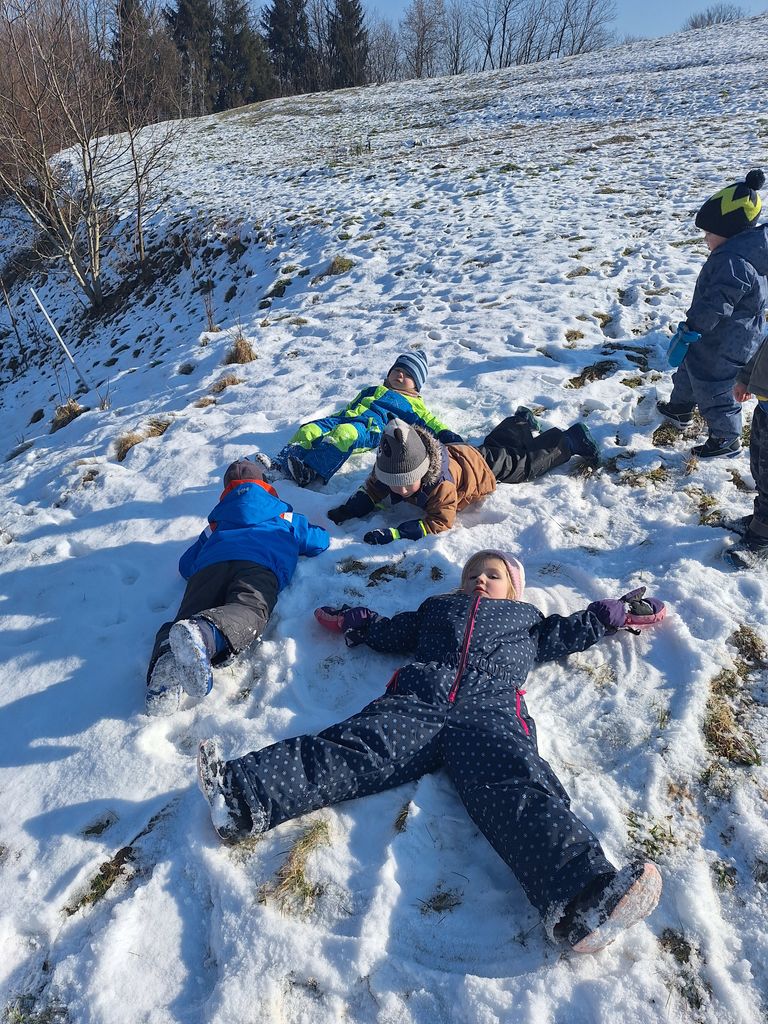 trenutek na snegu in se prepustili zimskim radostim. Mlajši otroci so se na