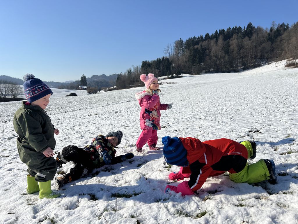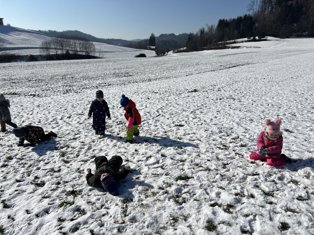 sneg šele navajali, se z njim igrali, iskali snežinke in led, puščali sledi v