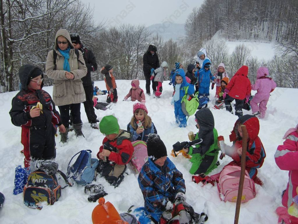 V petek, 22. februarja, smo se v sodelovanju s planinskim društvom Horjul z otroki odpravili na zimski pohod v okolico vrtca. Otroci so se s pomočjo staršev na pohod dobro pripravili. Prav vsi so imeli primerna, topla oblačila in obutev za hojo po snegu. Seveda niso pozabili na nahrbtnike z malico in pijačo.