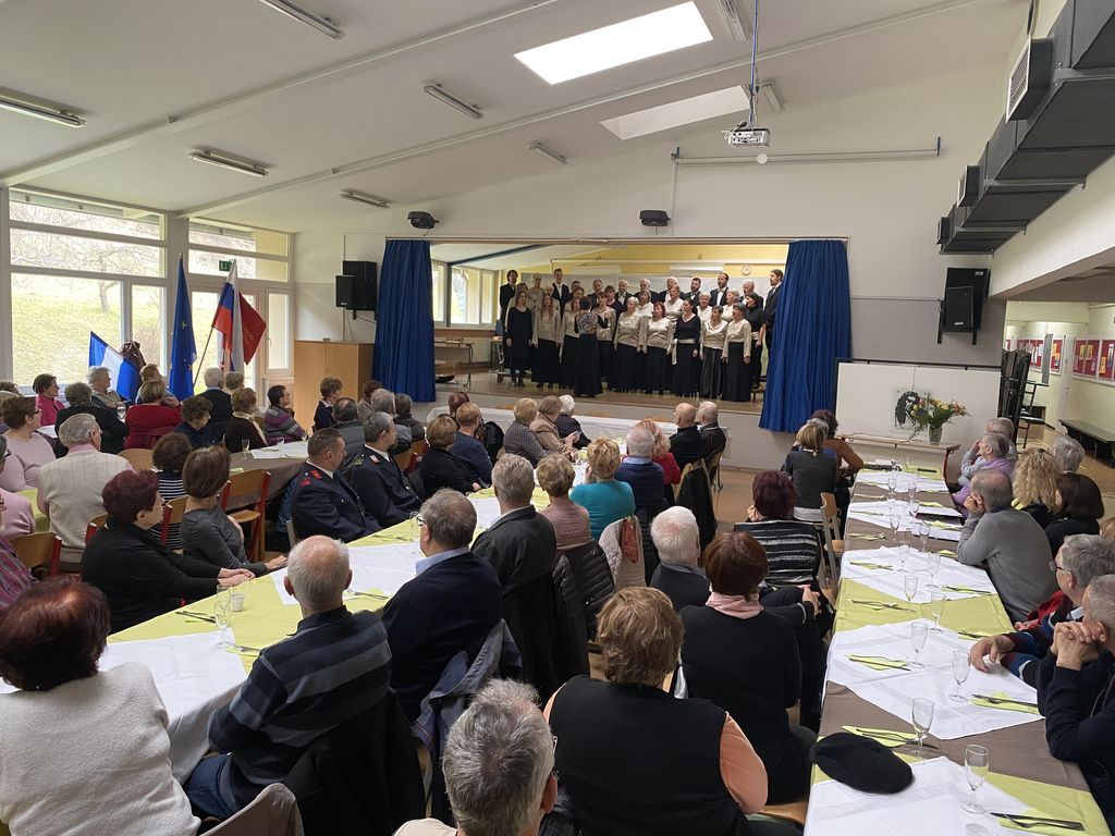 Ker je bila udeležba manj kot polovica članov DU, smo skladno s pravili delovanja potek OZ premaknili za pol ure na kasnejši čas in ga nadomestili s kulturnim programom. Kot je bilo pričakovano, je kulturni program povezoval naš predsednik DU Matko Zdešar. Njegov vezni tekst je bil kot vedno profesionalen. Ni nas presenetilo njegovo znanje Prešernovih pesmi, ki jih je recitiral brez pisne podlage. Zato pa so nas toliko bolj presenetili izvajalci kulturnega programa. Na oder je prišel več kot 30-članski mešani pevski zbor Zora Janče. Pripeljala ga je vsem znana in cenjena dirigentka Asta Jakopič. Organizacija kulturnega programa je bila pripravljena tajno, zato je bilo presenečenje še toliko večje.