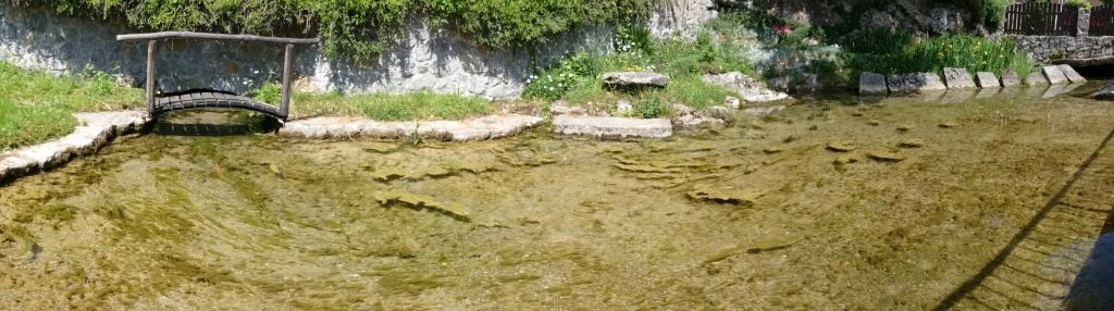 Izpod skal in izpod strmih bregov priteče na površje čista, bistra voda. Nikoli še ni usahnila, kot da jo nekaj žene iz globine. Pravijo pa , da priteka nekje z Male vode in iz Ljubljanice in da so nekoč večkrat priplavale postrvi. Že dolgo jih ne vidiš več.