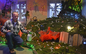 Približno teden dni je potreboval, da je sestavil veliko leseno konstrukcijo iz dveh klopi, sedmih palet in drugih lesenih dodatkov, na katere je nato položil deset škatel mahu ter na koncu še figurice, hiške in druge elemente. »Če želiš, da izgledajo lepo, je potrebnega kar veliko dela. Dosti je tudi preskušanja, kateri parobek bo ustrezen, ampak kljub temu mi je to početje všeč,« pravi Lojze, ki je postavil jaslice na približno pol sobe, velike 4 kratx 4 metre. »Ko so postavljene, posebnega vzdrževanja ni, le sem ter tja jih pošpricam z vodno pršilko, da ostane mah in ostalo zelenje bolj sveže.« Lojze je imel že od nekdaj v sebi strast za postavljanje jaslic. Sprva so bile majhne, pač primerne prostoru, ko pa je pred leti mama odšla v dom in je hiša ostala prazna, je prazne prostore izkoristil za svojo ustvarjalno strast. Figurice, lučke in hiške vsako leto dokupuje, tako da postajajo vedno bolj zanimive. Če vas mika, da bi si jih ogledali, se le ustavite pri Šinkov'c (zgornja vrzdenška avtobusna postaja) in Lojze vam jih bo z veseljem pokazal. Rdeč peugeot pred hišo bo znak, da je doma, lahko pa ga tudi pokličete na 031 458 839.