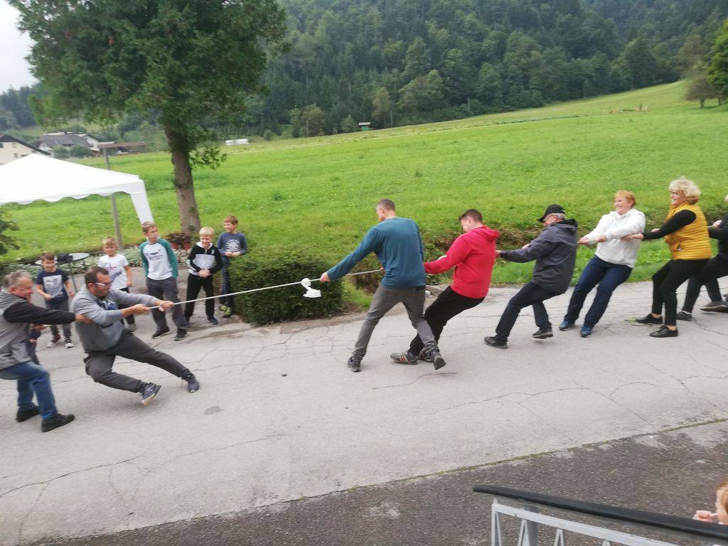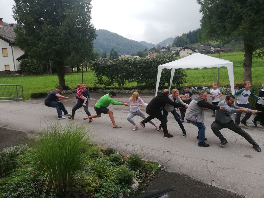 Ulični piknik vsako leto poteka enako. Ena od družin je zadolžena za informiranje prebivalcev ulice, da bo kmalu naš piknik, in zbiranje denarja. Najlepši del za moške je seveda sobota zjutraj, ko grejo na kavico, kjer se morajo dogovoriti, kam bodo šli kupit meso. Ta nabava se po navadi malo zavleče, ampak glede na to, da začnemo ob dvanajstih za kosilo, prav dosti manevra spet nimajo. Vsaka družina prinese svojo pijačo, ki jo seveda prijazno deli z drugimi. Poleg pa prinese še vsak, kar ima doma oziroma kar pripravi ali speče. Razne solate, sladice, sadje, zelenjava z domačega vrta … Skratka, ni nam hudega. Naš izbrani prostor za ta dogodek je vsako leto isti. In to je na sredini ulice, ravno na Nuškinem dvorišču. In hvala ji za gostoljubje ter poslušanje prepevanja in glasnega govorjenja in hihitanja tistih nekaj, ki ostanejo/mo malo dlje. Stalnica to soboto je zagotovo vlečenje vrvi, tekmovanje med zgornjim in spodnjim delom ulice. Letos smo ugotovili (beri: spodnji del ulice), da bo nekako treba najti drugo taktiko ali pa drugačno razporeditev moči. Vsa leta nas tile z zgornjega konca povlečejo k sebi.