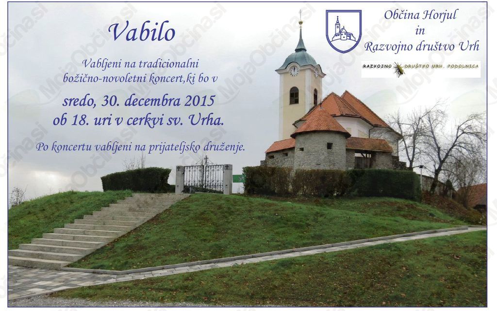 Vabljeni na tradicionalni božično-novoletni koncert, ki bo v sredo, 30. decembra 2015, ob 18. uri v cerkvi sv. Urha, po koncertu pa na prijateljsko druženje!