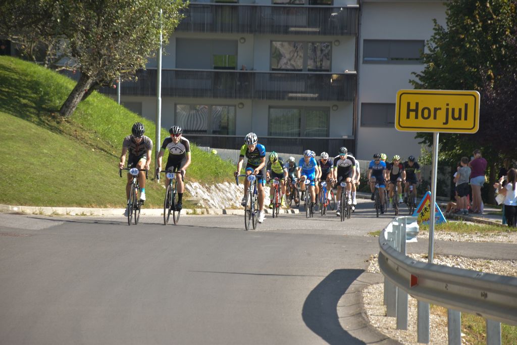 Ob 11. uri je sledila še druga faza duatlona – dirka s kolesom. Start te je bil na občinskem trgu v Horjulu, nato pa so se udeleženci podali na skupinsko vožnjo do letečega starta pri cerkvi v Horjulu. Spet je skupino do cilja vodil "fičo," ki se ga lahko nekateri spomnite iz starejših izvedb dirke na Koreno. Z obnovo tradicije je bilo na dirki čutiti nekoliko nostalgično vzdušje in občutek domačnosti, ki je v sodobnem športu vsekakor neprecenljiv. Rezultati tistih, ki so se preizkusili v obeh disciplinah – teku in kolesarjenju – so se sešteli v kategoriji DUATLON.