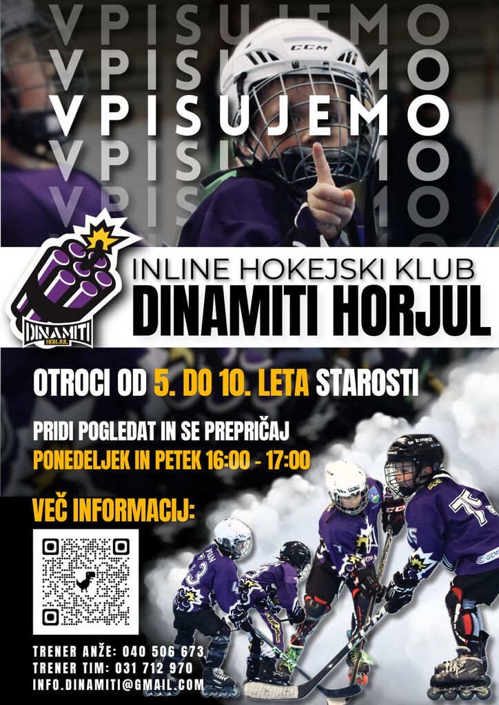 V Horjulu ropotajo koleščki, otroški smeh in športni duh – Inline hokejski klub Dinamiti Horjul vabi k vpisu nove člane, stare od 5 do 9 let. Inline hokej je odlična osnova za vsestranski telesni razvoj, saj otroci razvijajo koordinacijo, ravnotežje, ekipni duh, odgovornost in samozavest – vse to skozi zabavno igro, ki jih navdušuje od treninga do treninga. »Naš cilj ni le športna rast, ampak tudi druženje, prijateljstva in veselje do igre,« poudarjajo trenerji.
